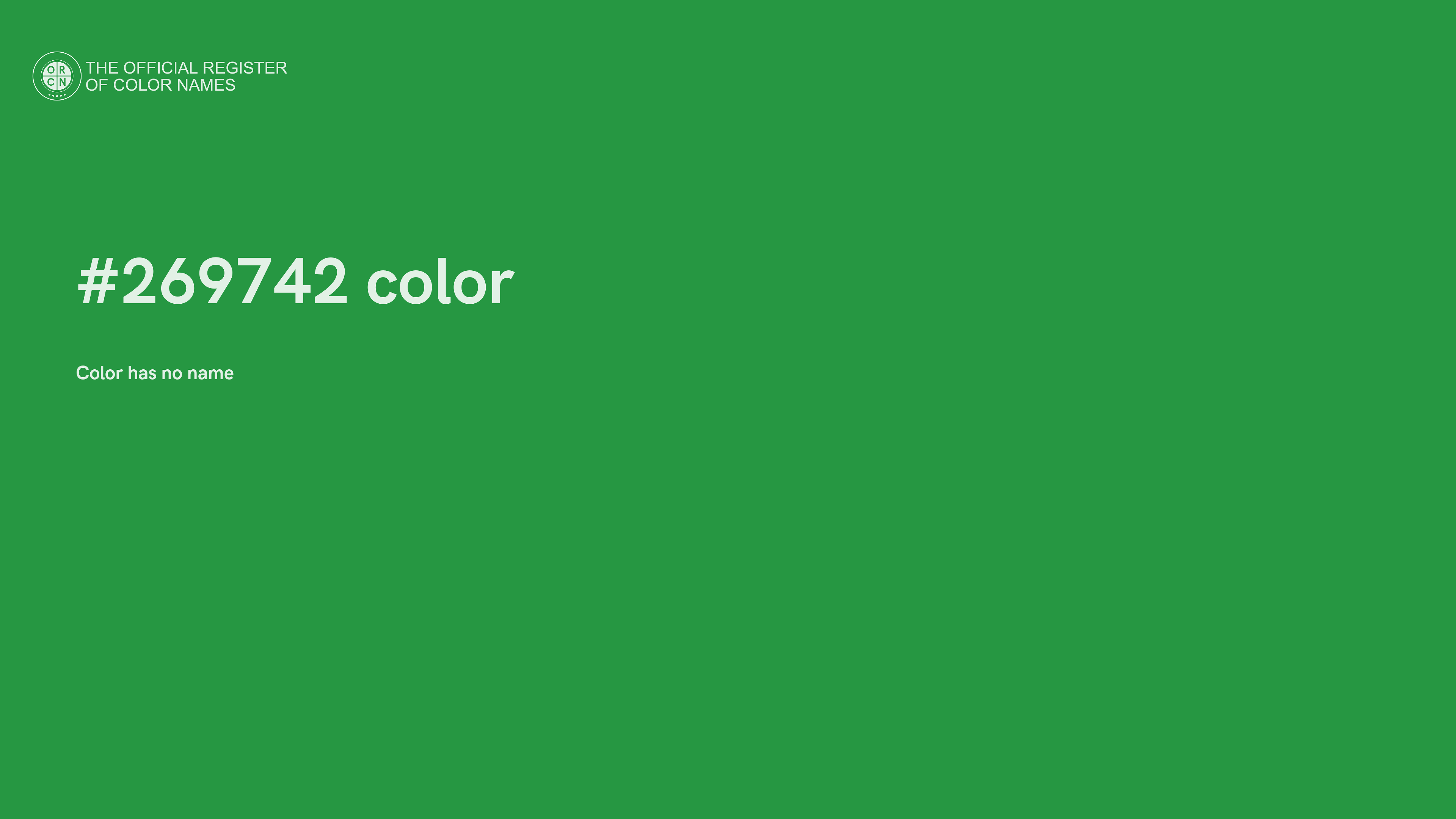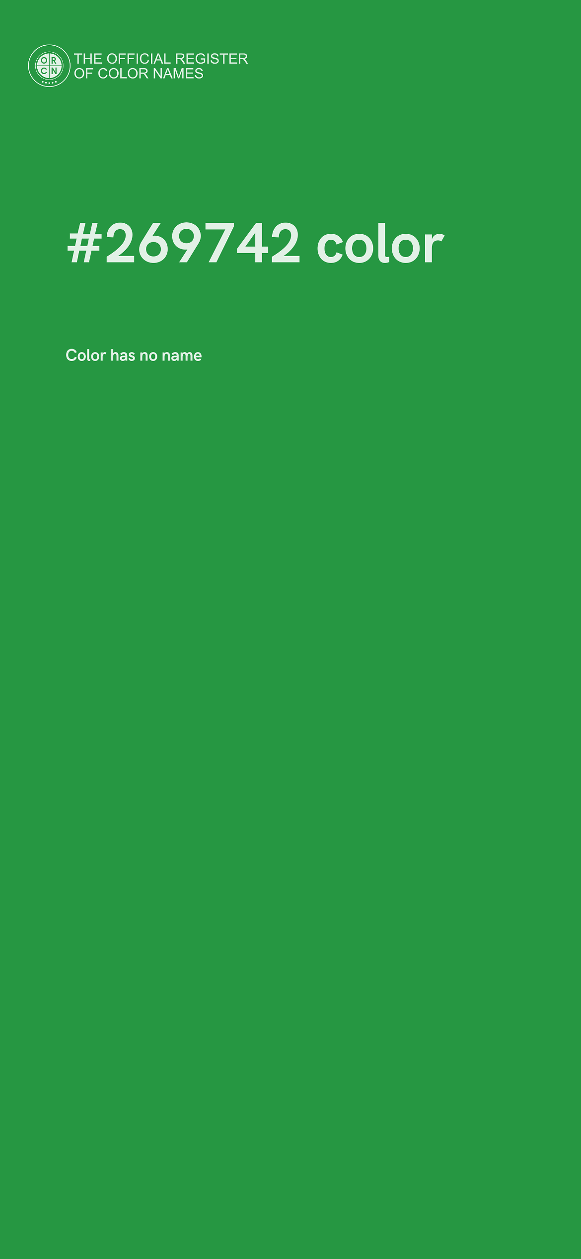 The digital color HEX #269742 belongs to the Spring Green Color Family featuring High Saturation (Saturation Family) and Neutral (Brightness Family).