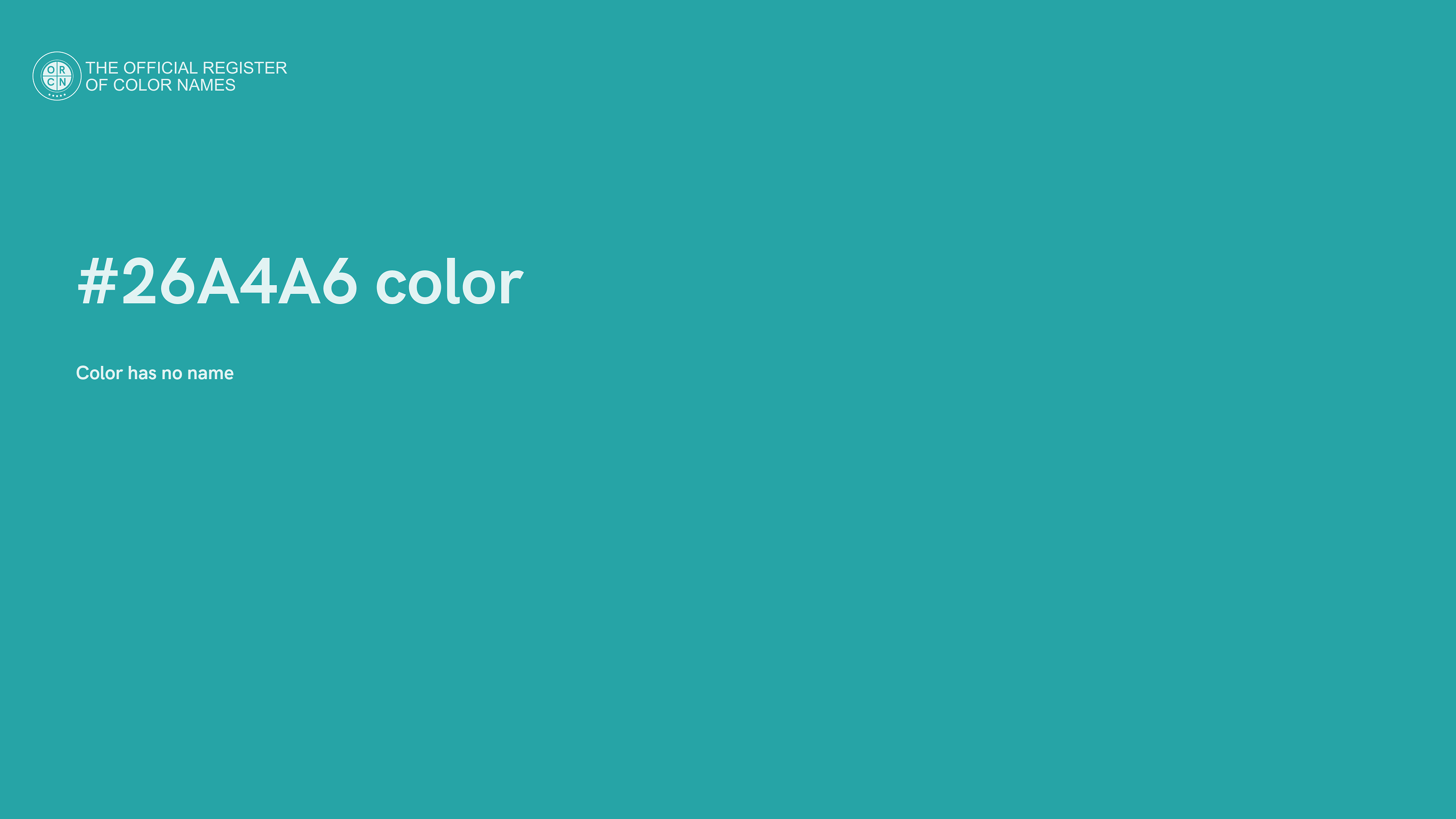 For printing in non digital world, #26A4A6 is represented in CMYK as 50 Cyan, 1 Magenta, 0 Yellow, and 35 Black (Key) (C:50 M:1 Y:0 K:35).