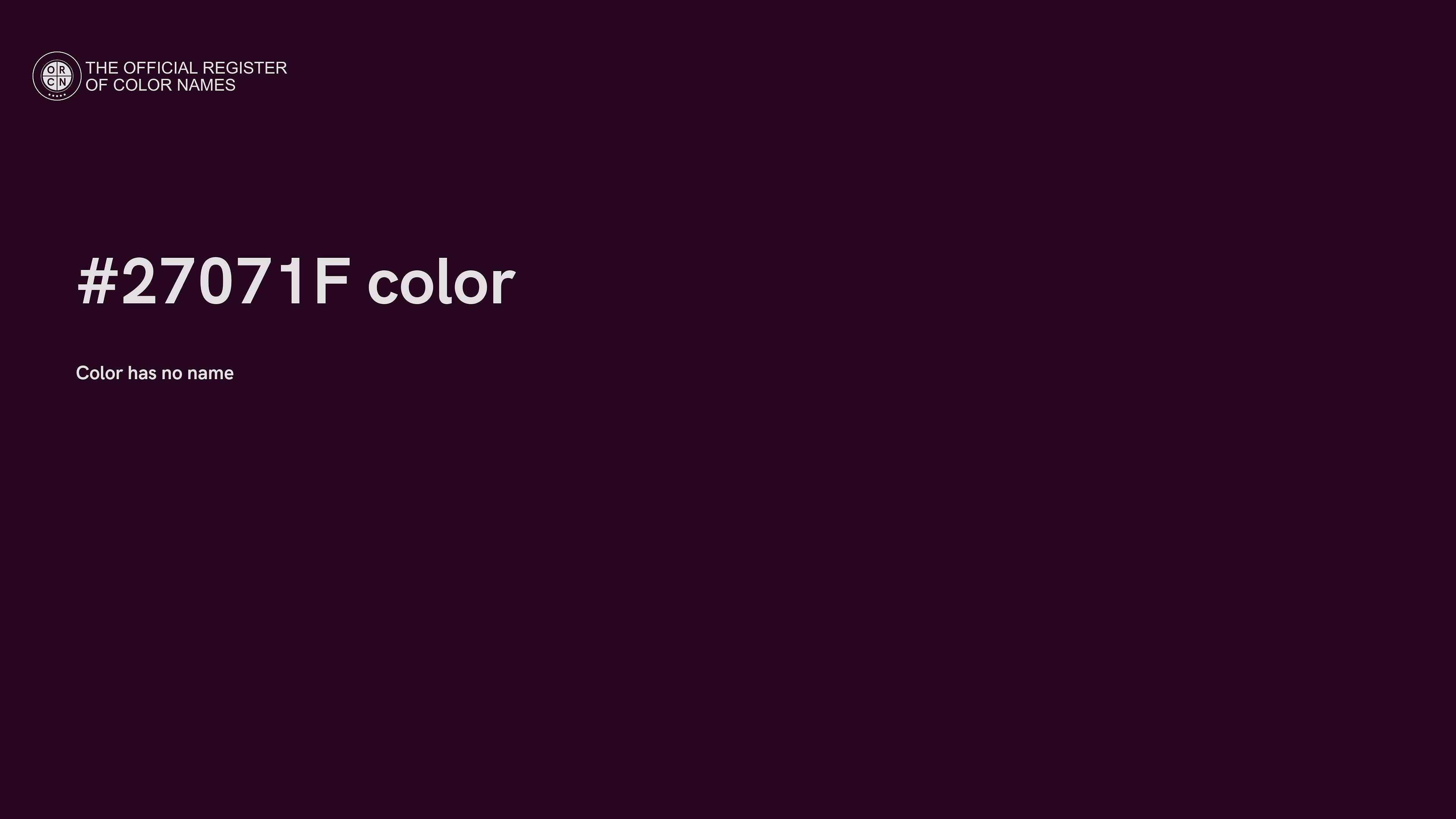 The digital color HEX #27071F belongs to the Rose Color Family featuring High Saturation (Saturation Family) and Very Dark (Brightness Family).