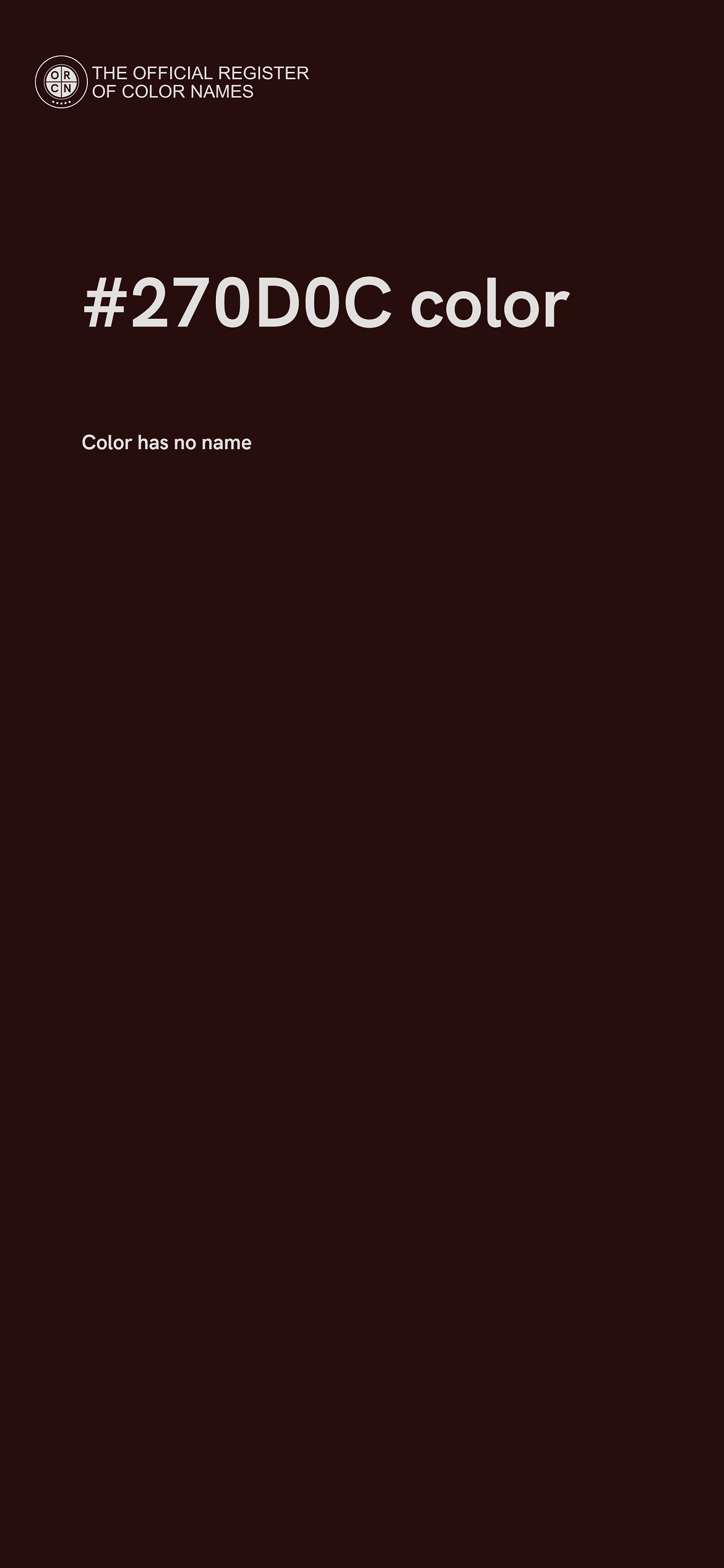 For printing in non digital world, #270D0C is represented in CMYK as 0 Cyan, 10 Magenta, 11 Yellow, and 85 Black (Key) (C:0 M:10 Y:11 K:85).