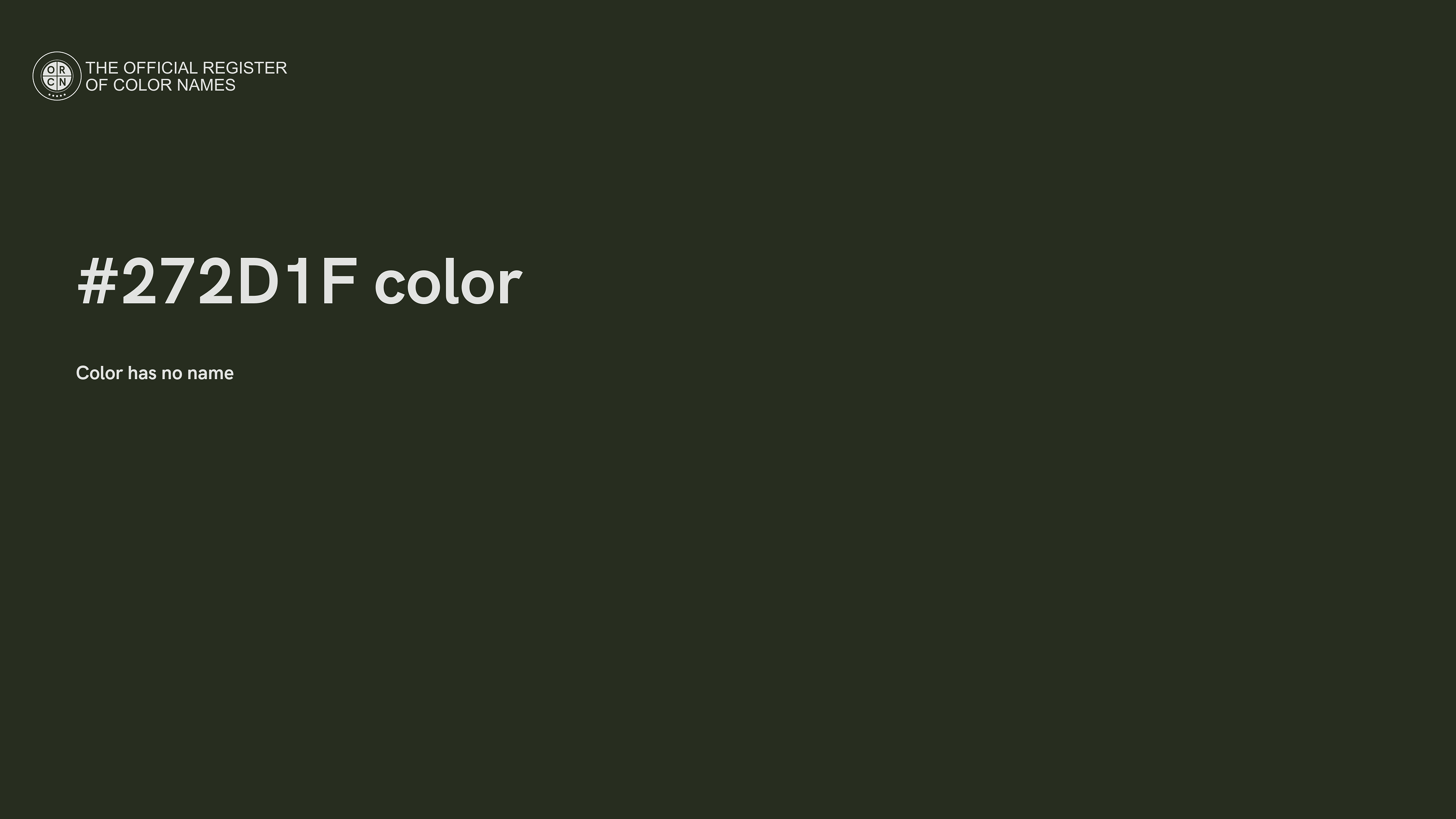 The digital color HEX #272D1F belongs to the Chartreuse Color Family featuring Low Saturation (Saturation Family) and Dark (Brightness Family).
