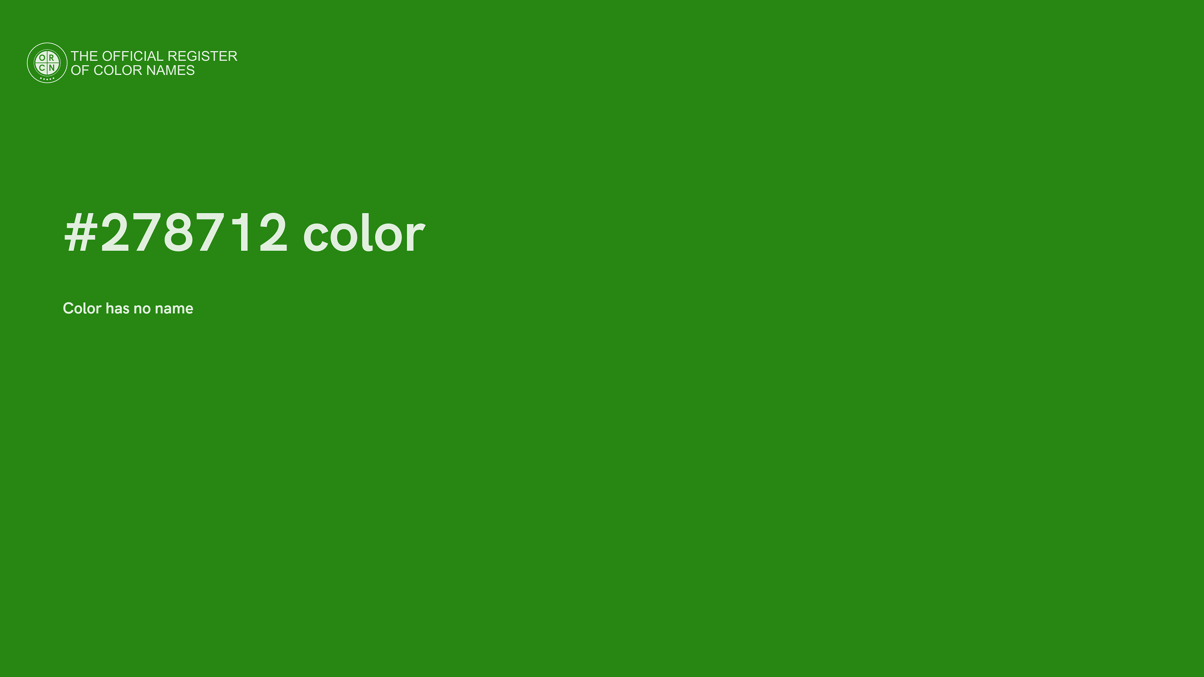 The digital color HEX #278712 belongs to the Green Color Family featuring High Saturation (Saturation Family) and Neutral (Brightness Family).