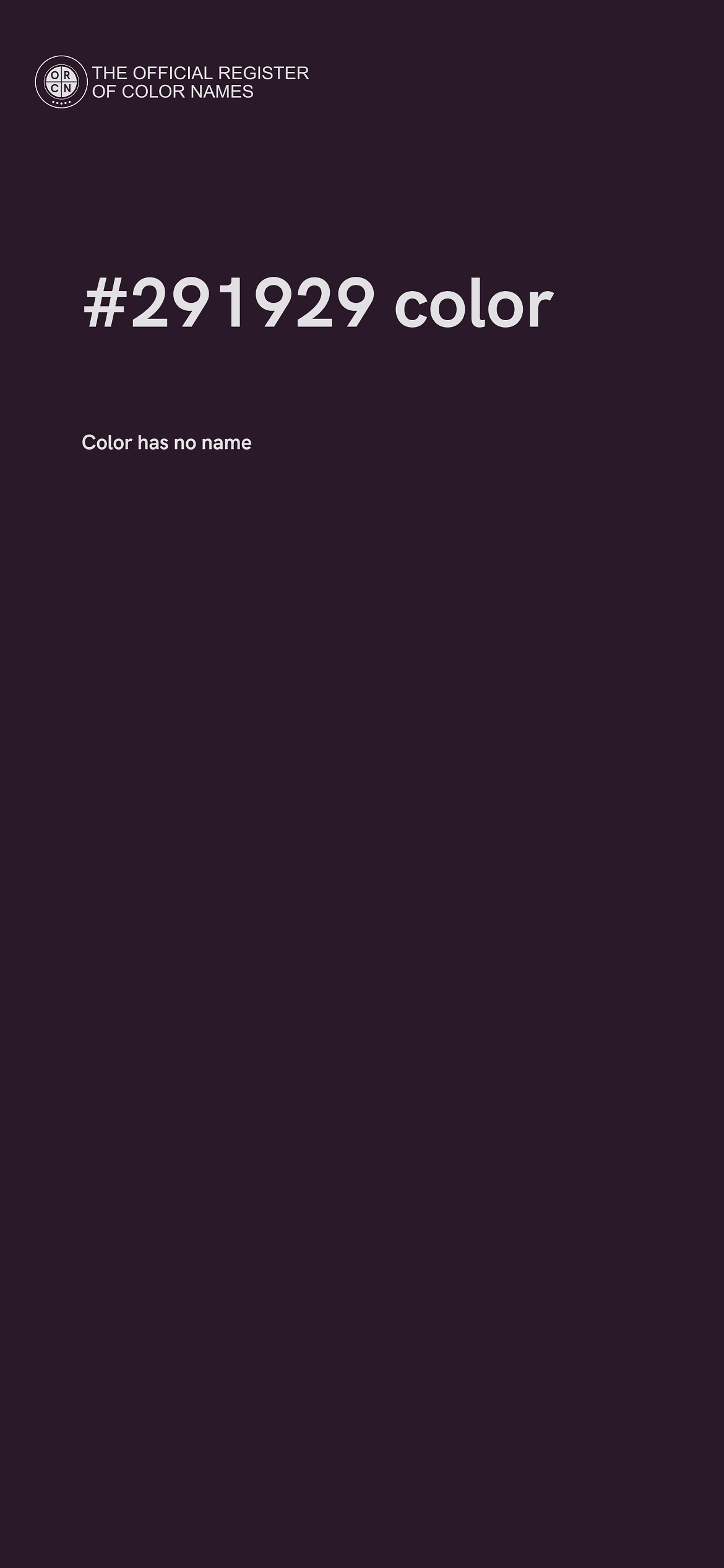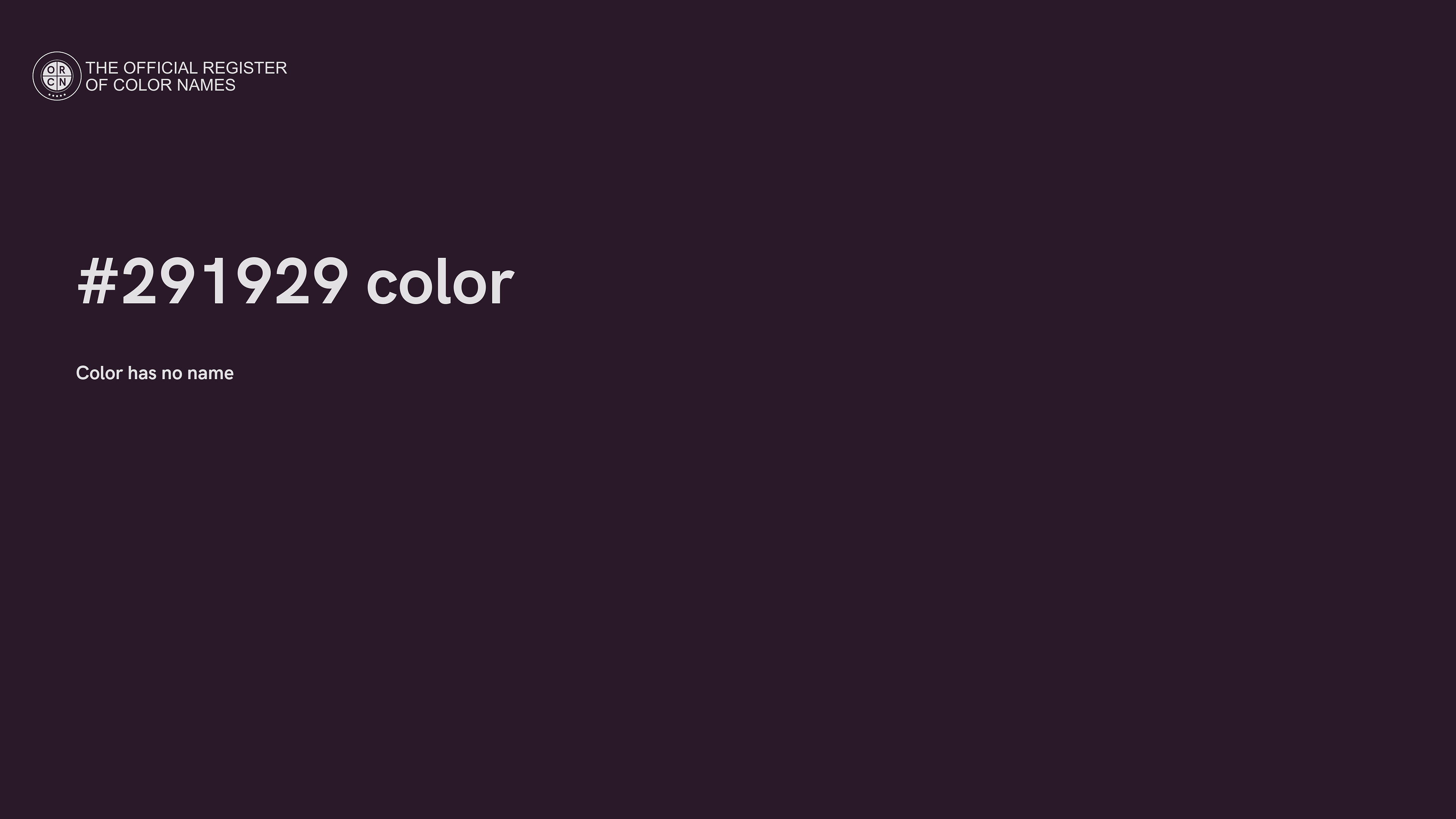 For printing in non digital world, #291929 is represented in CMYK as 0 Cyan, 6 Magenta, 0 Yellow, and 84 Black (Key) (C:0 M:6 Y:0 K:84).