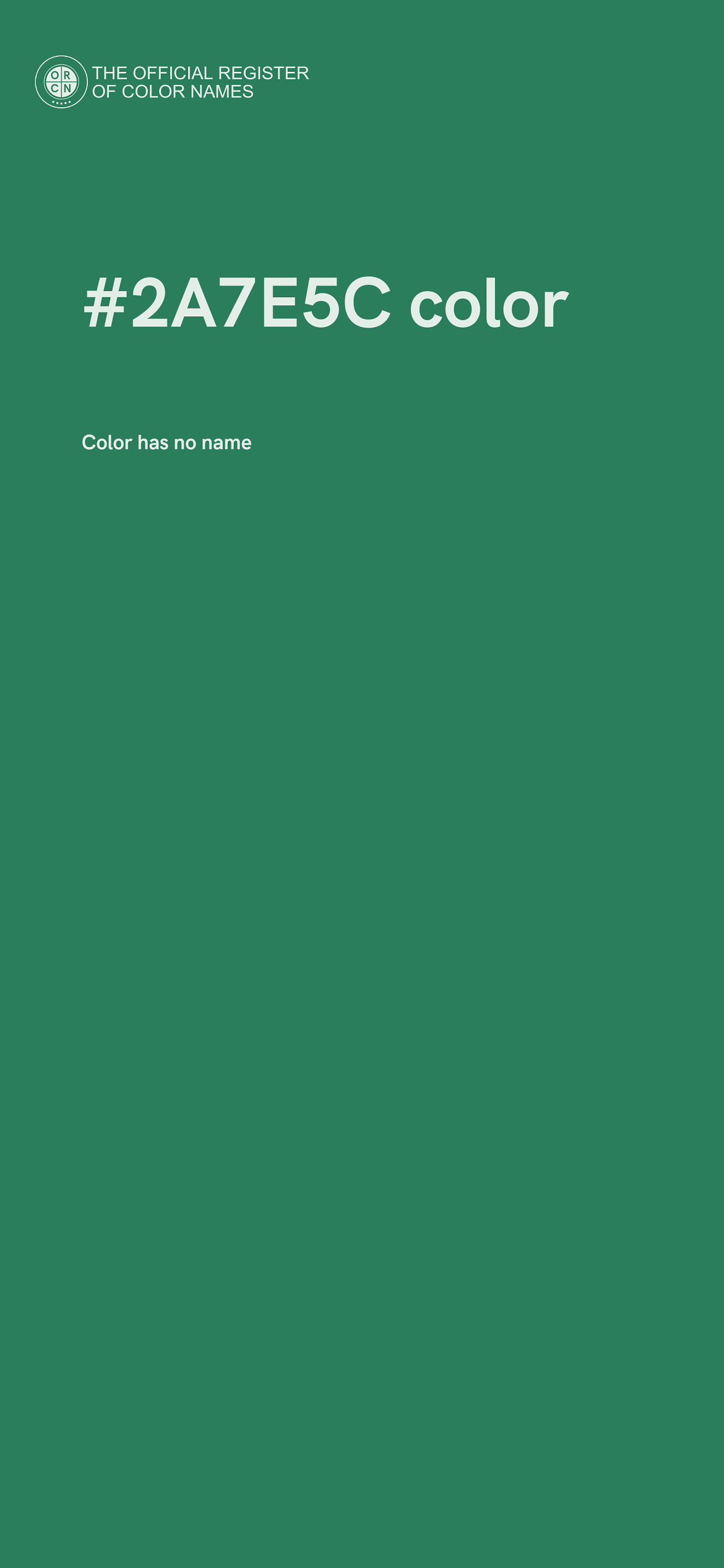 The digital color HEX #2A7E5C belongs to the Spring Green Color Family featuring Moderate Saturation (Saturation Family) and Neutral (Brightness Family).