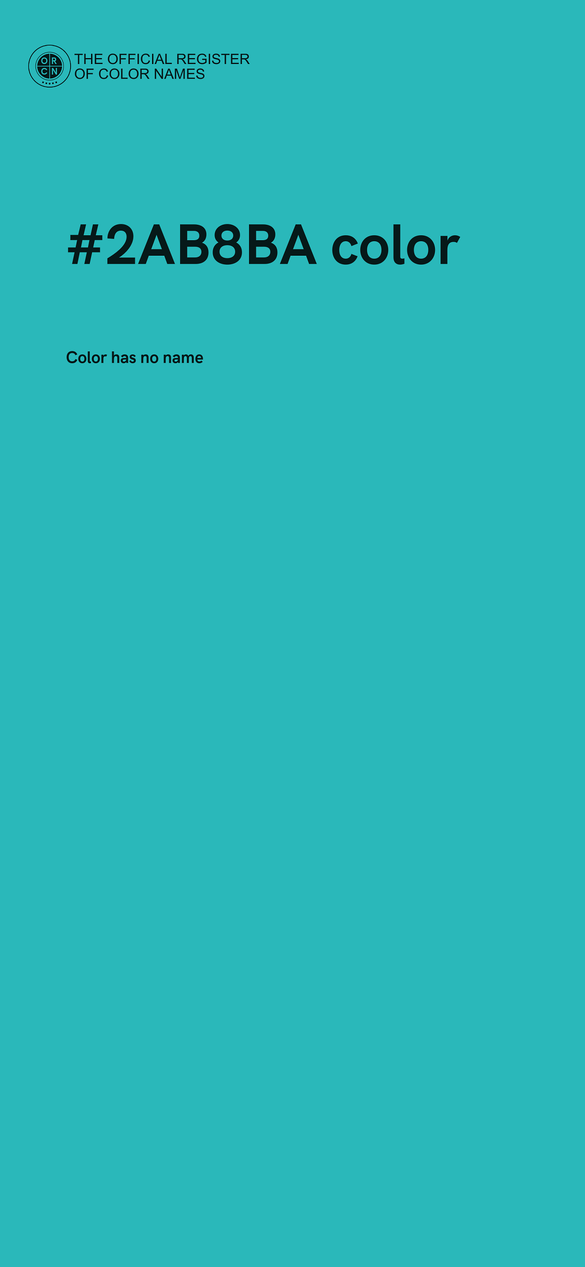 The digital color HEX #2AB8BA belongs to the Cyan Color Family featuring High Saturation (Saturation Family) and Light (Brightness Family).