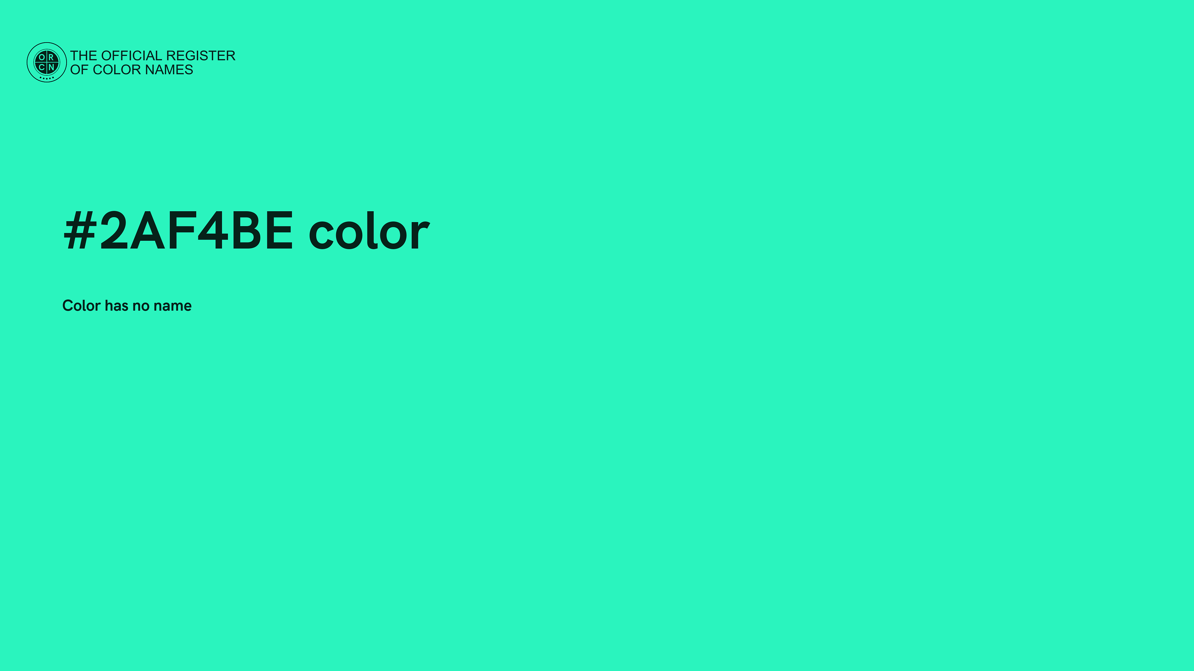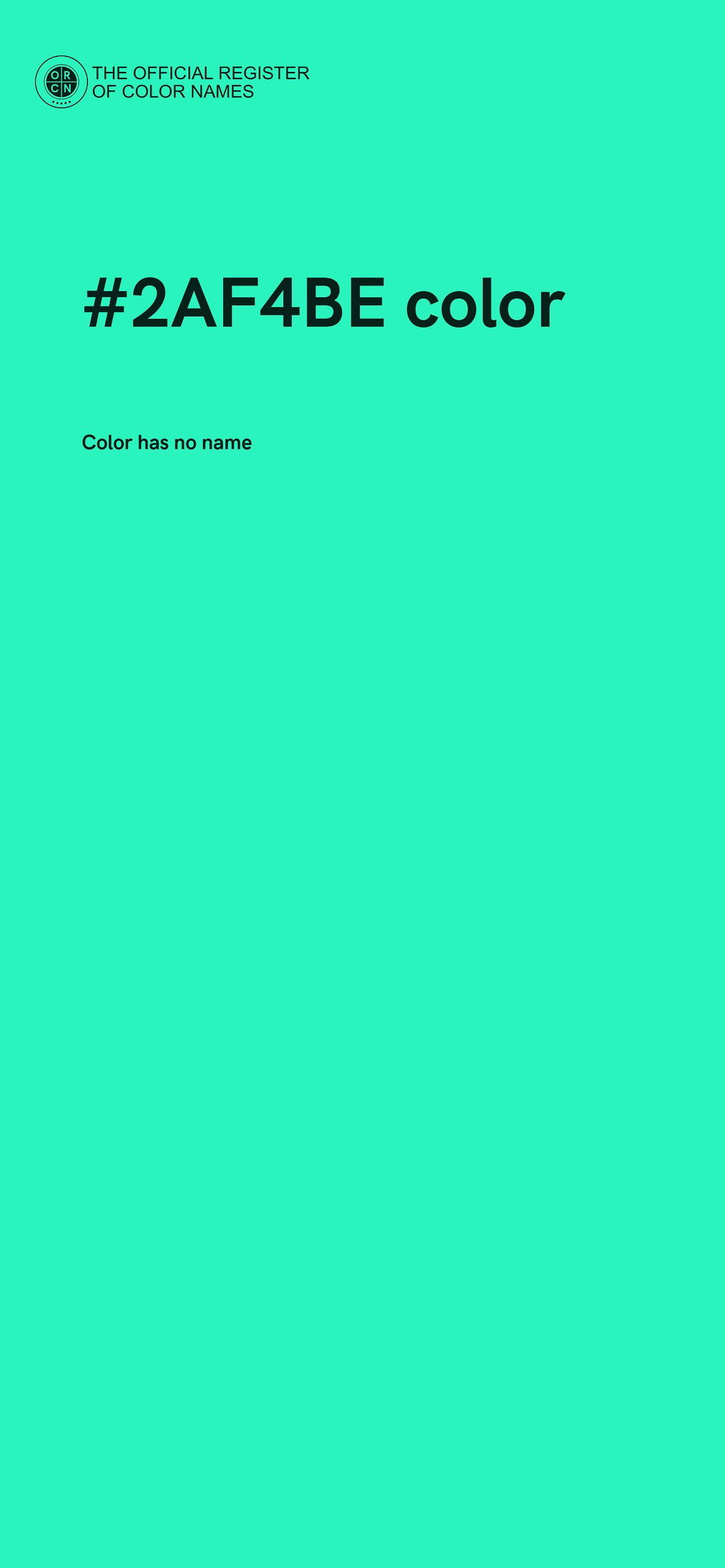 The digital color HEX #2AF4BE belongs to the Spring Green Color Family featuring Full Saturation (Saturation Family) and Light (Brightness Family).