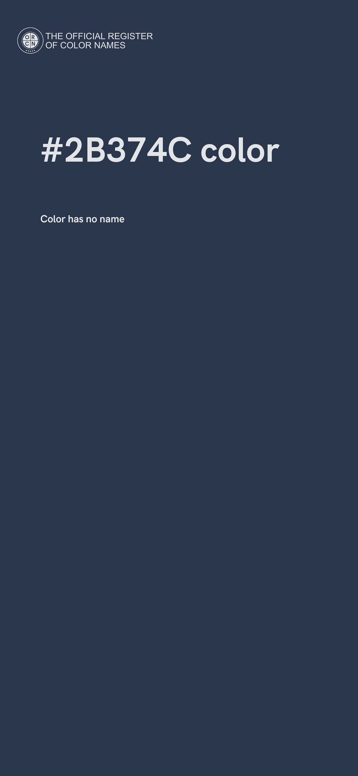 The digital color HEX #2B374C belongs to the Azure Color Family featuring Mild Saturation (Saturation Family) and Dark (Brightness Family).