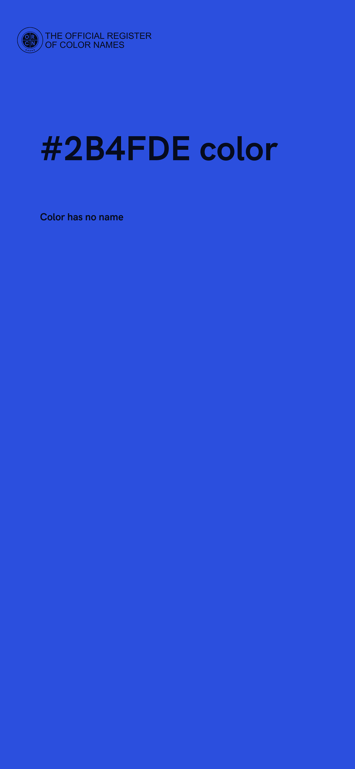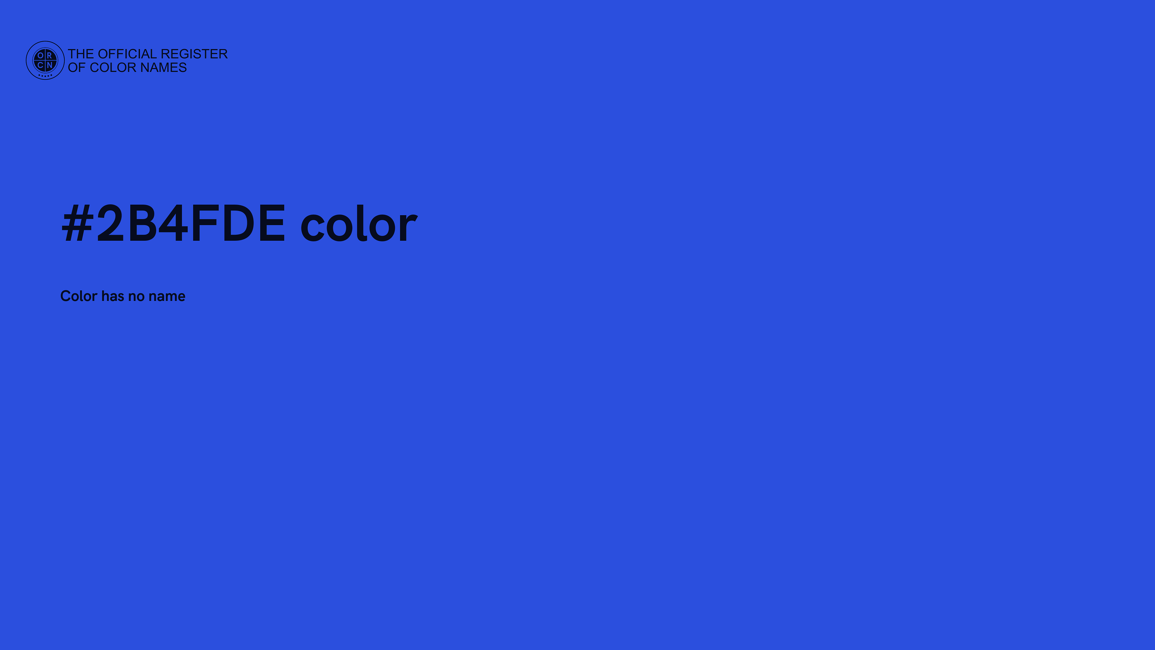The digital color HEX #2B4FDE belongs to the Blue Color Family featuring High Saturation (Saturation Family) and Light (Brightness Family).