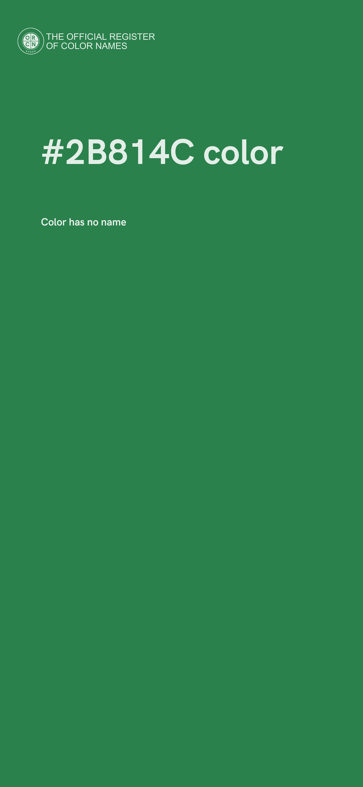 The digital color HEX #2B814C belongs to the Spring Green Color Family featuring Moderate Saturation (Saturation Family) and Neutral (Brightness Family).