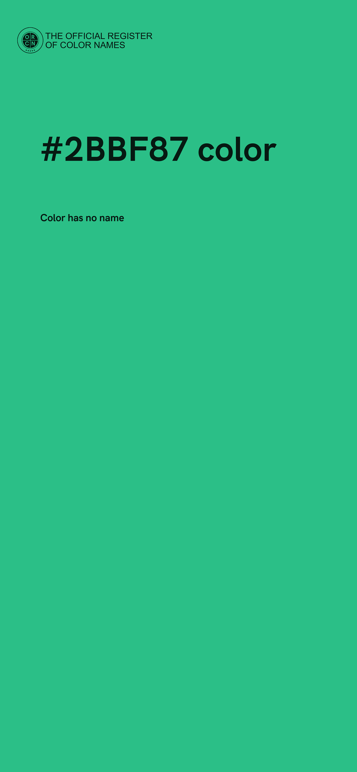 The digital color HEX #2BBF87 belongs to the Spring Green Color Family featuring High Saturation (Saturation Family) and Light (Brightness Family).