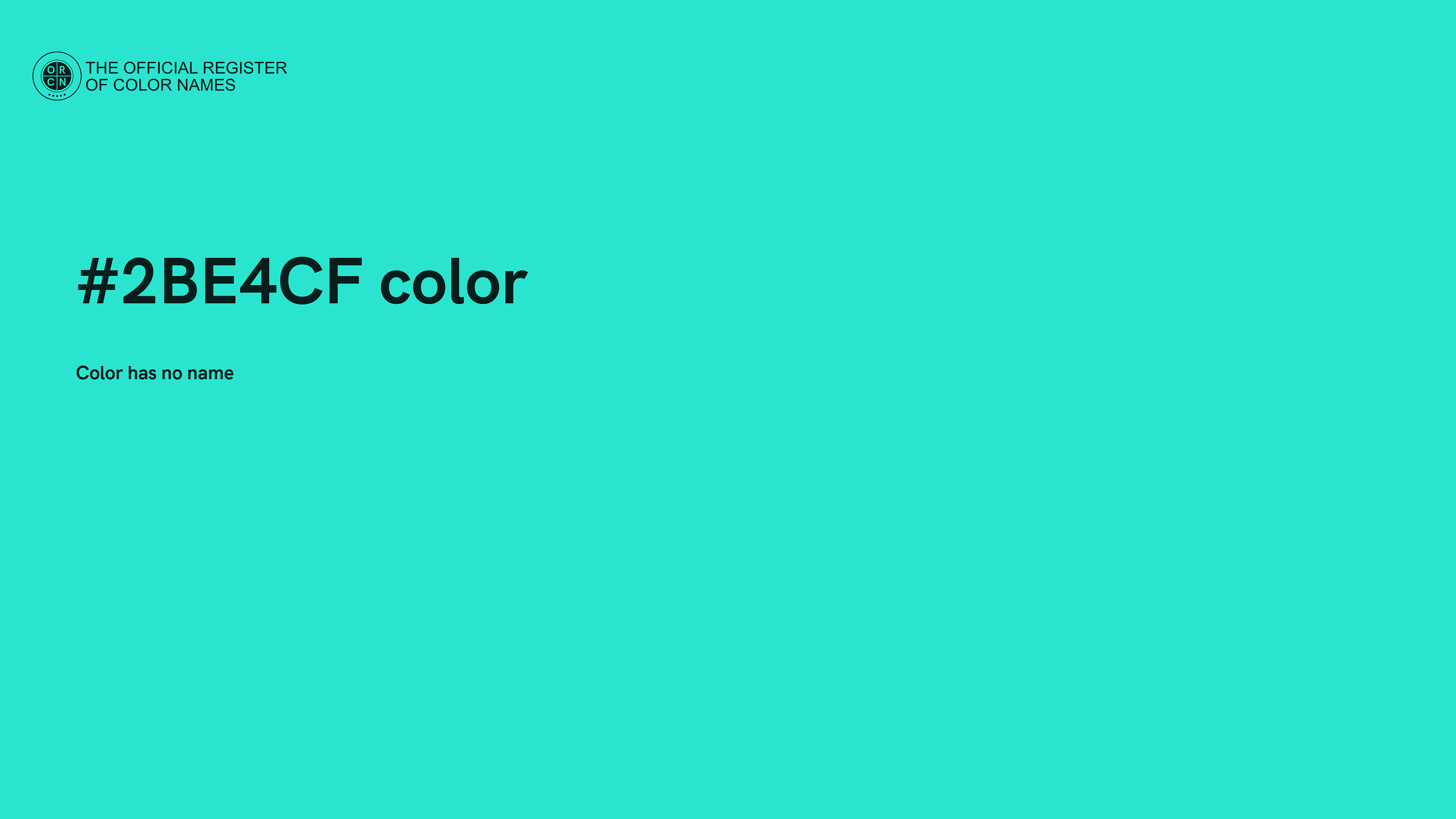The digital color HEX #2BE4CF belongs to the Cyan Color Family featuring High Saturation (Saturation Family) and Light (Brightness Family).