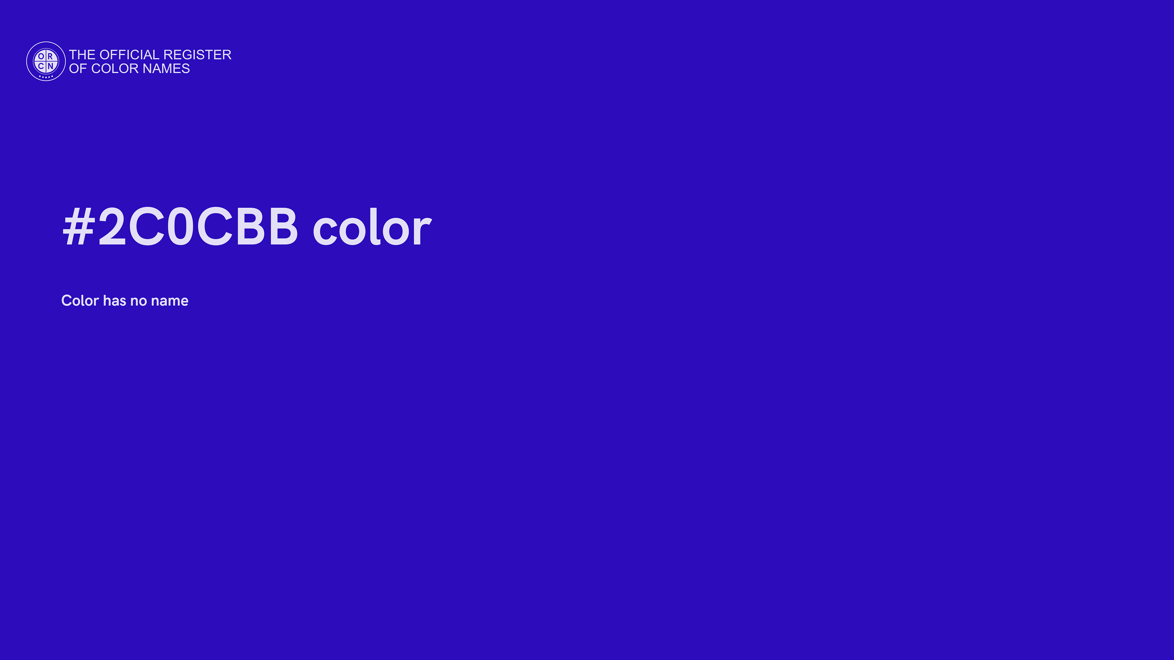 The digital color HEX #2C0CBB belongs to the Blue Color Family featuring Full Saturation (Saturation Family) and Neutral (Brightness Family).