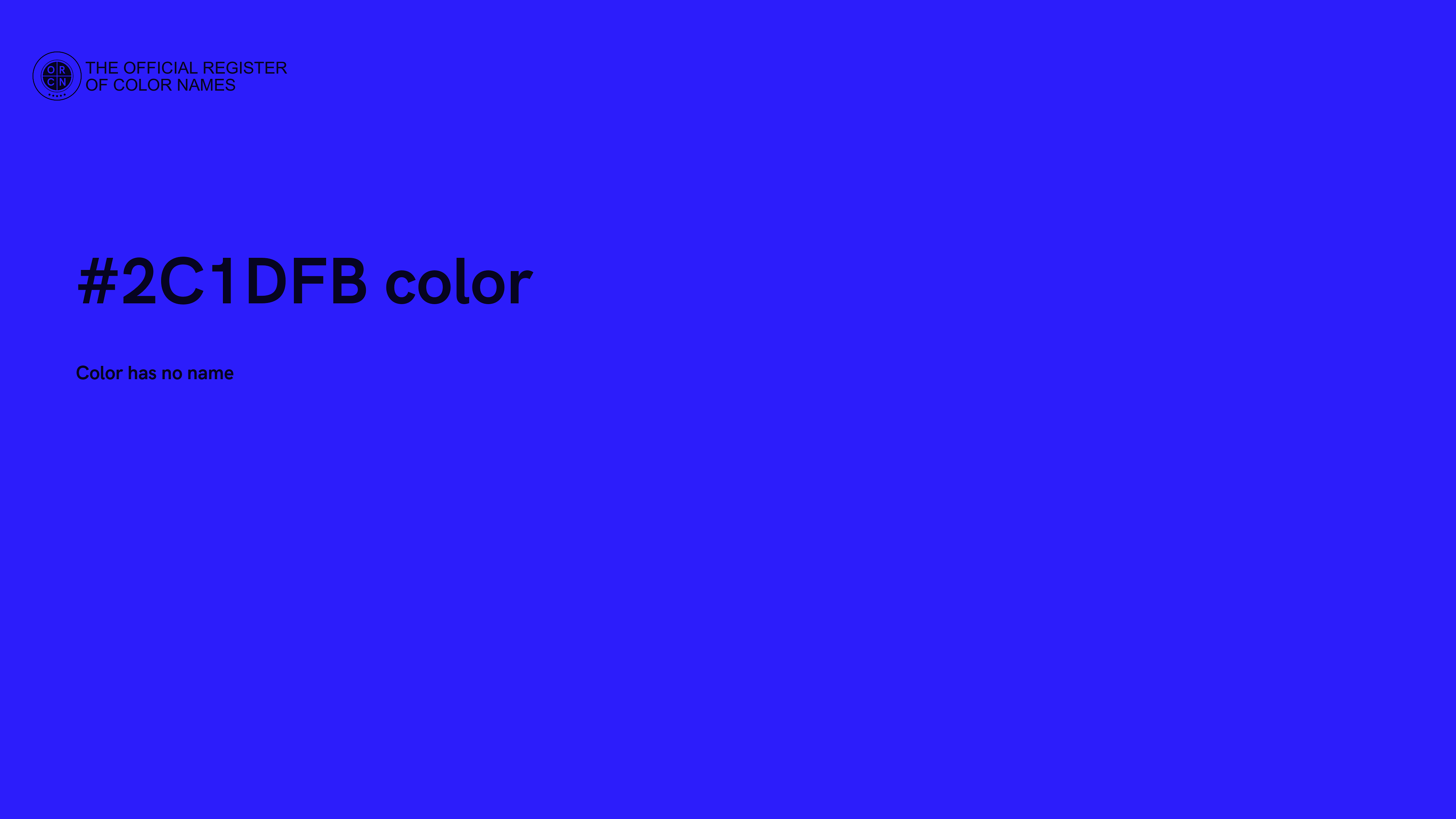 For printing in non digital world, #2C1DFB is represented in CMYK as 81 Cyan, 87 Magenta, 0 Yellow, and 2 Black (Key) (C:81 M:87 Y:0 K:2).