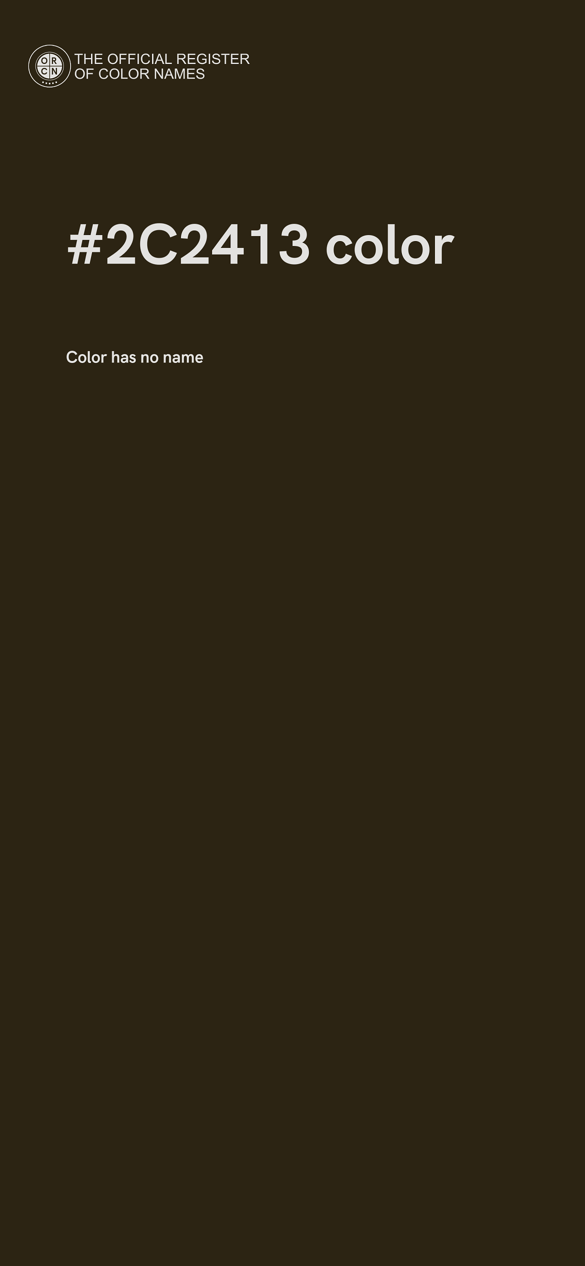 The digital color HEX #2C2413 belongs to the Orange Color Family featuring Moderate Saturation (Saturation Family) and Dark (Brightness Family).