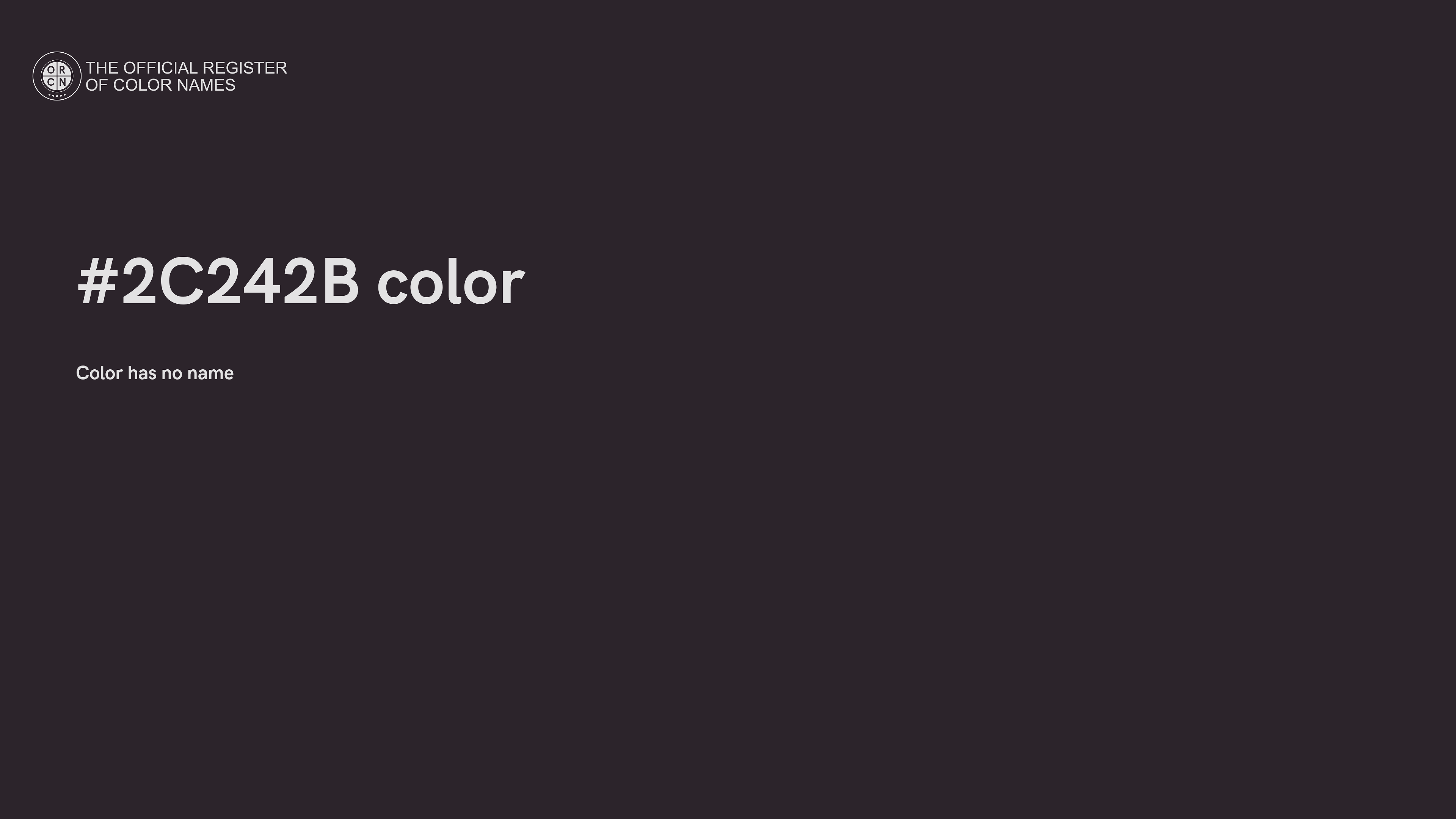 For printing in non digital world, #2C242B is represented in CMYK as 0 Cyan, 3 Magenta, 0 Yellow, and 83 Black (Key) (C:0 M:3 Y:0 K:83).