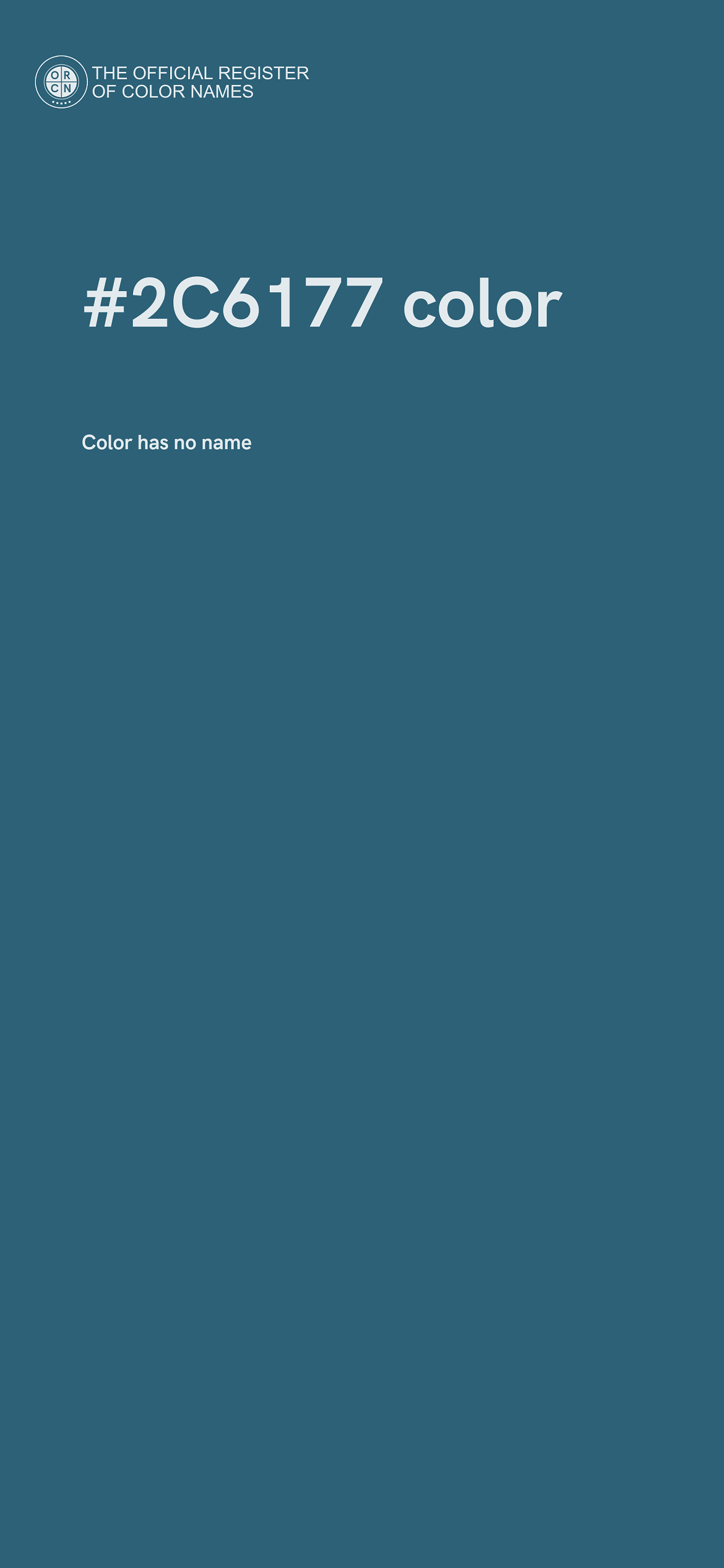 The digital color HEX #2C6177 belongs to the Azure Color Family featuring Moderate Saturation (Saturation Family) and Neutral (Brightness Family).