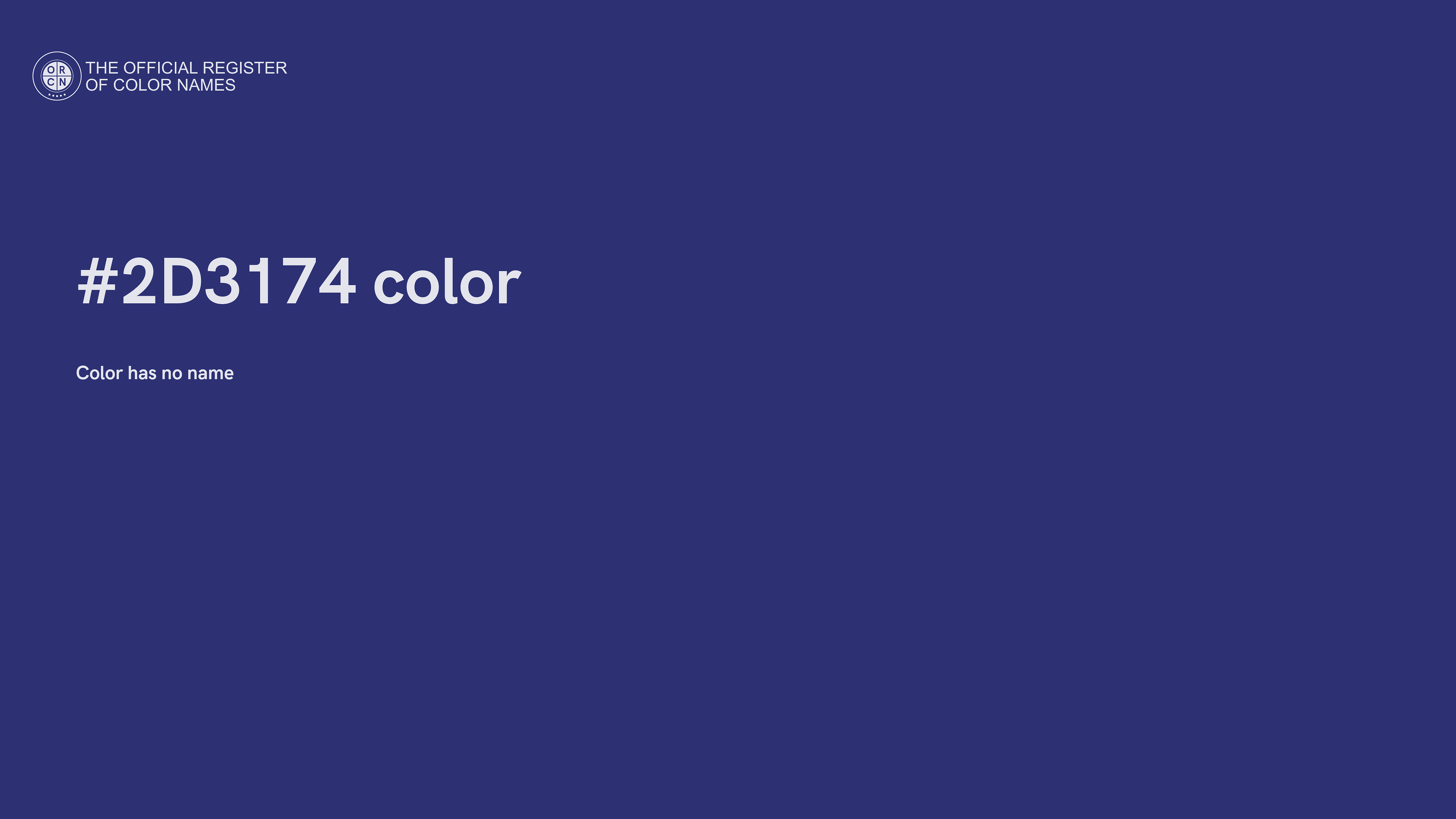 The digital color HEX #2D3174 belongs to the Blue Color Family featuring Moderate Saturation (Saturation Family) and Neutral (Brightness Family).