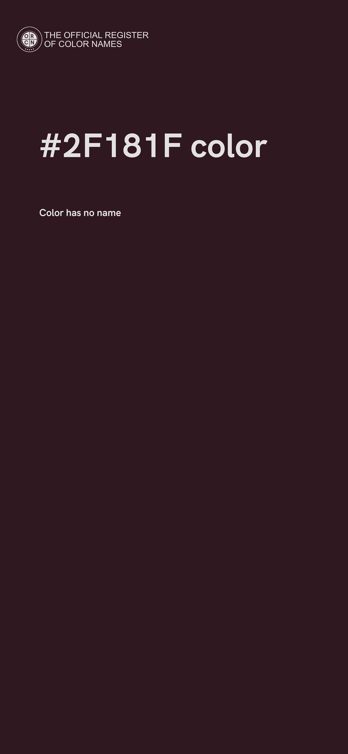 For printing in non digital world, #2F181F is represented in CMYK as 0 Cyan, 9 Magenta, 6 Yellow, and 82 Black (Key) (C:0 M:9 Y:6 K:82).