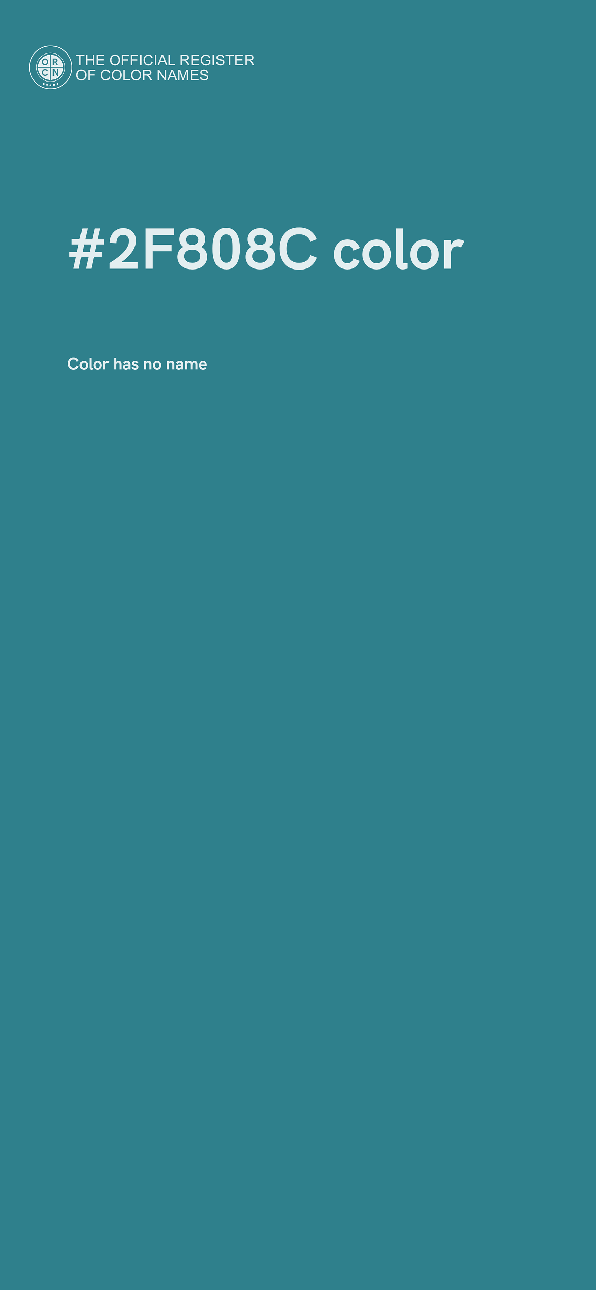 The digital color HEX #2F808C belongs to the Cyan Color Family featuring Moderate Saturation (Saturation Family) and Neutral (Brightness Family).