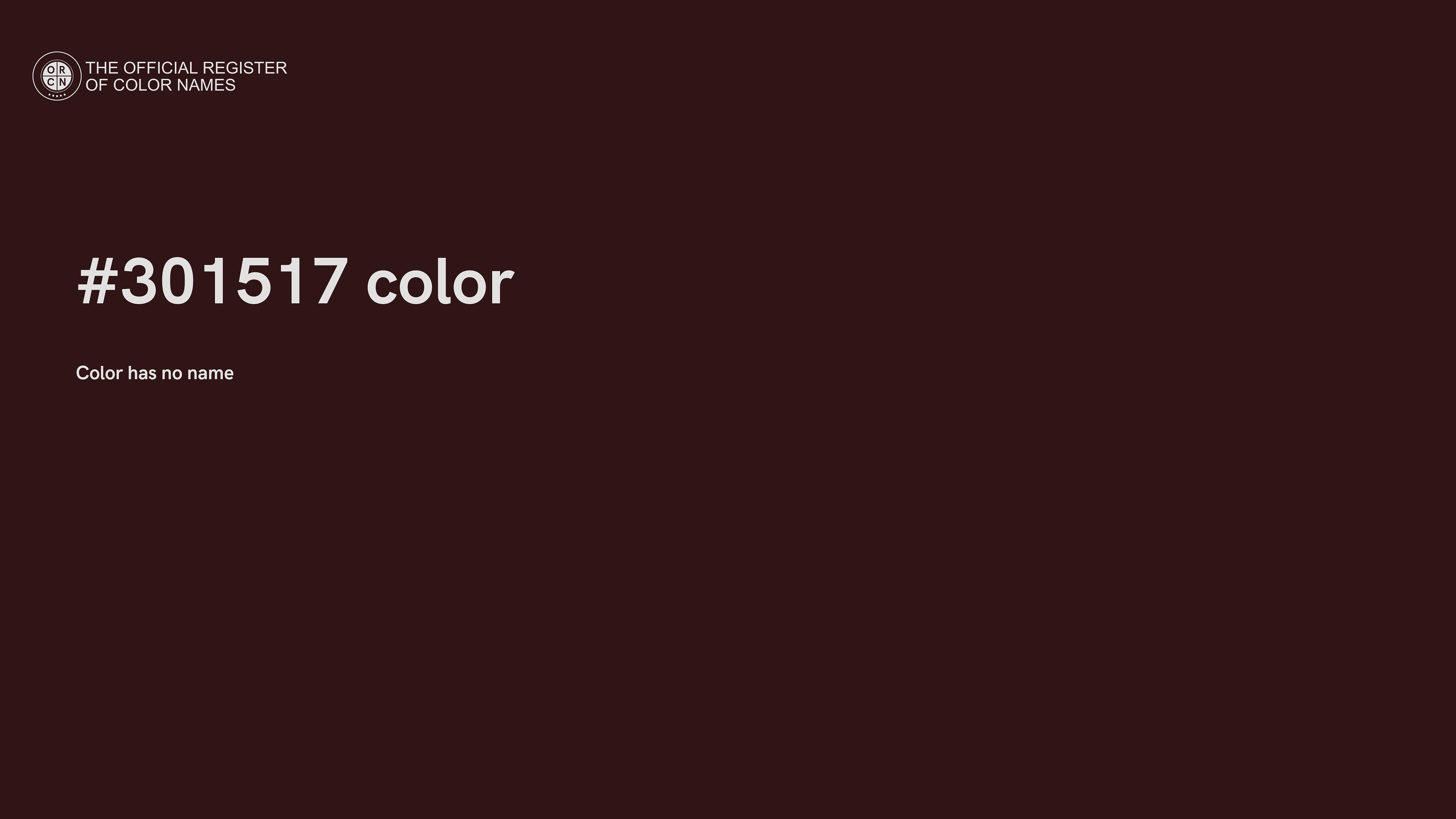 The digital color HEX #301517 belongs to the Red Color Family featuring Mild Saturation (Saturation Family) and Dark (Brightness Family).