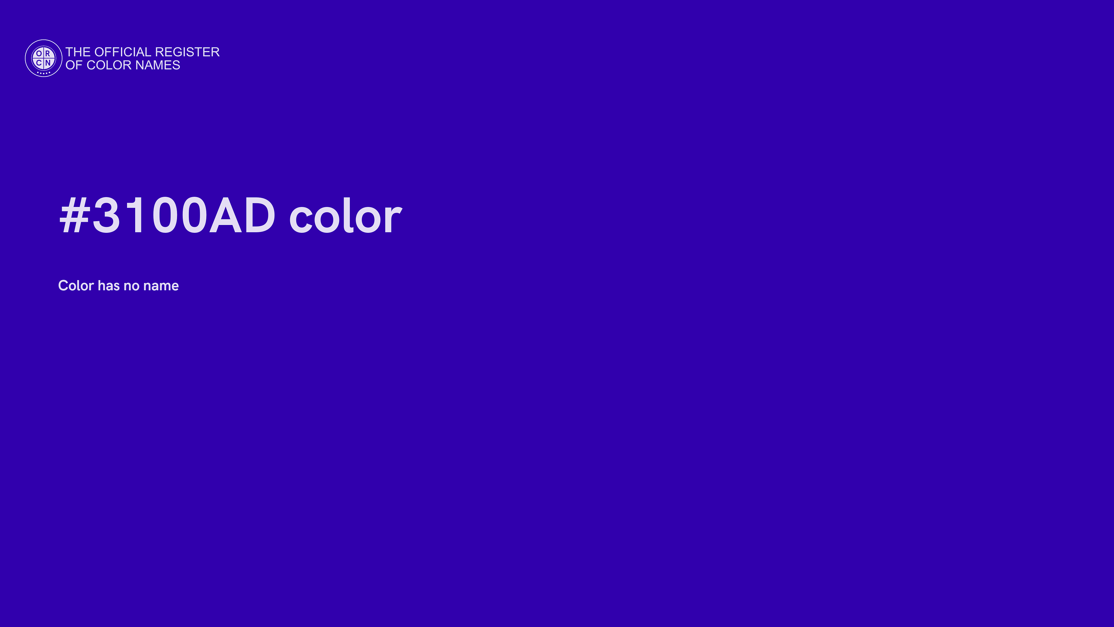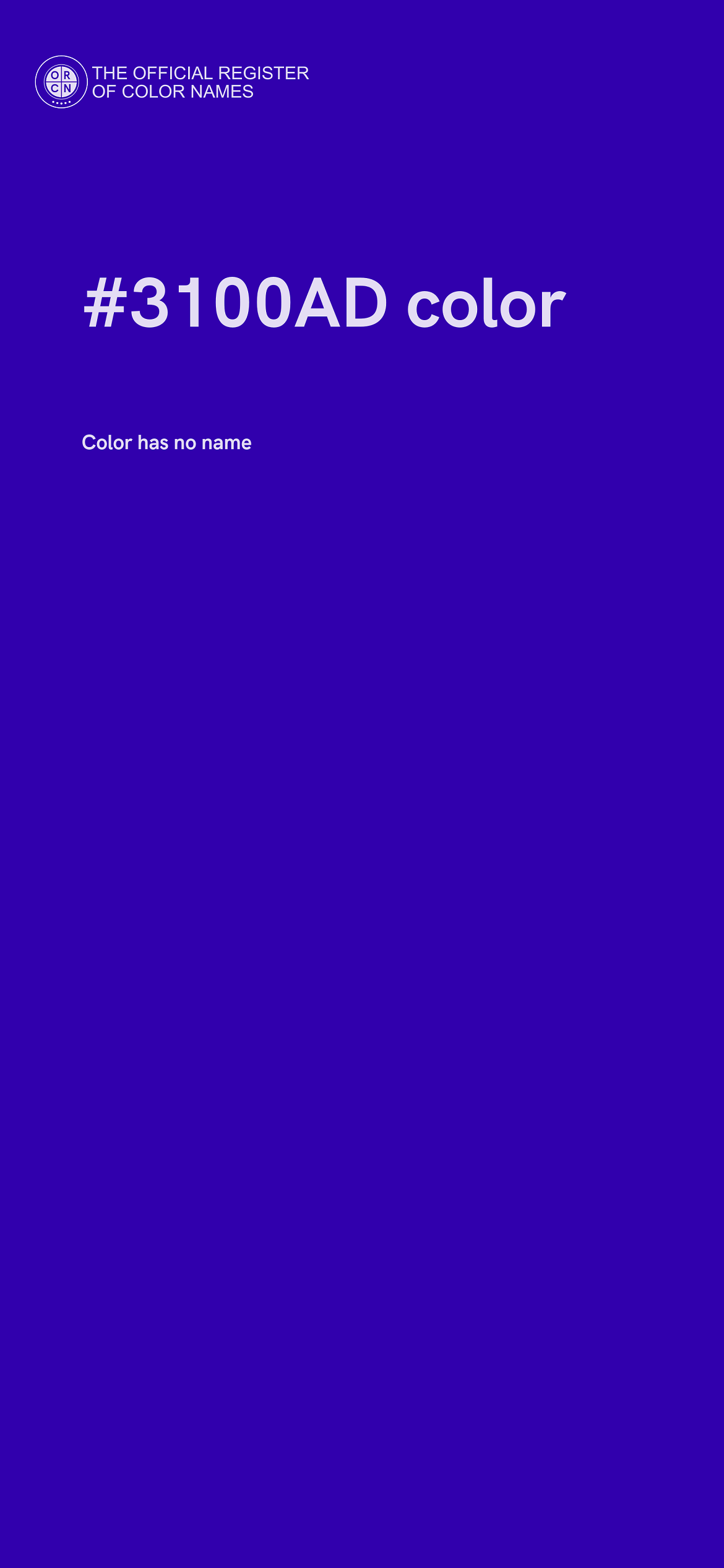 The digital color HEX #3100AD belongs to the Violet Color Family featuring Full Saturation (Saturation Family) and Neutral (Brightness Family).