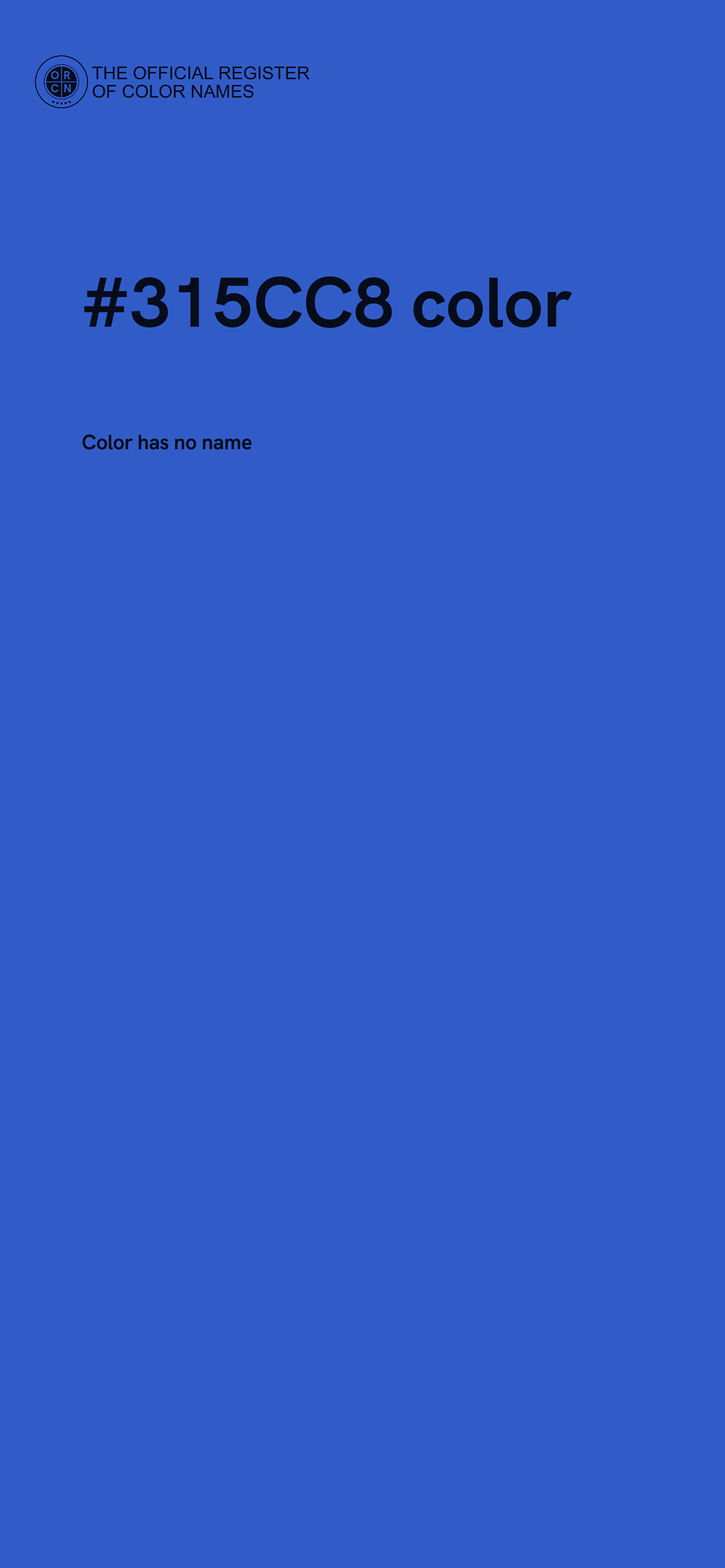 The digital color HEX #315CC8 belongs to the Azure Color Family featuring High Saturation (Saturation Family) and Light (Brightness Family).