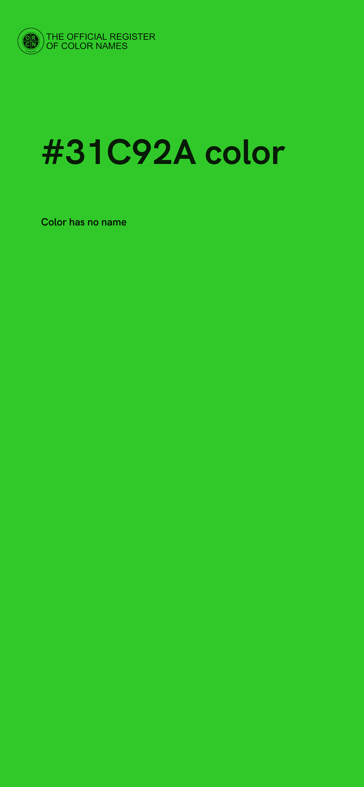 The digital color HEX #31C92A belongs to the Green Color Family featuring High Saturation (Saturation Family) and Light (Brightness Family).