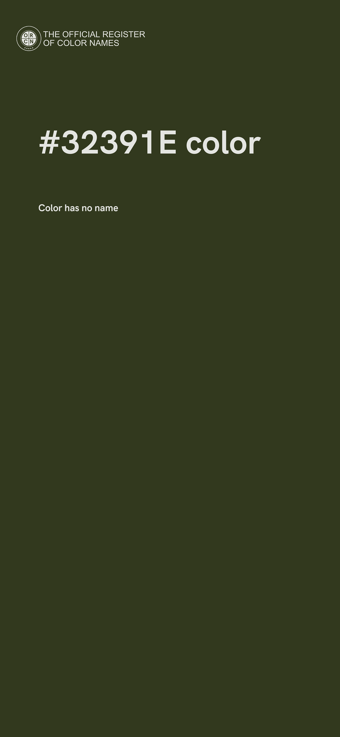 The digital color HEX #32391E belongs to the Chartreuse Color Family featuring Mild Saturation (Saturation Family) and Dark (Brightness Family).
