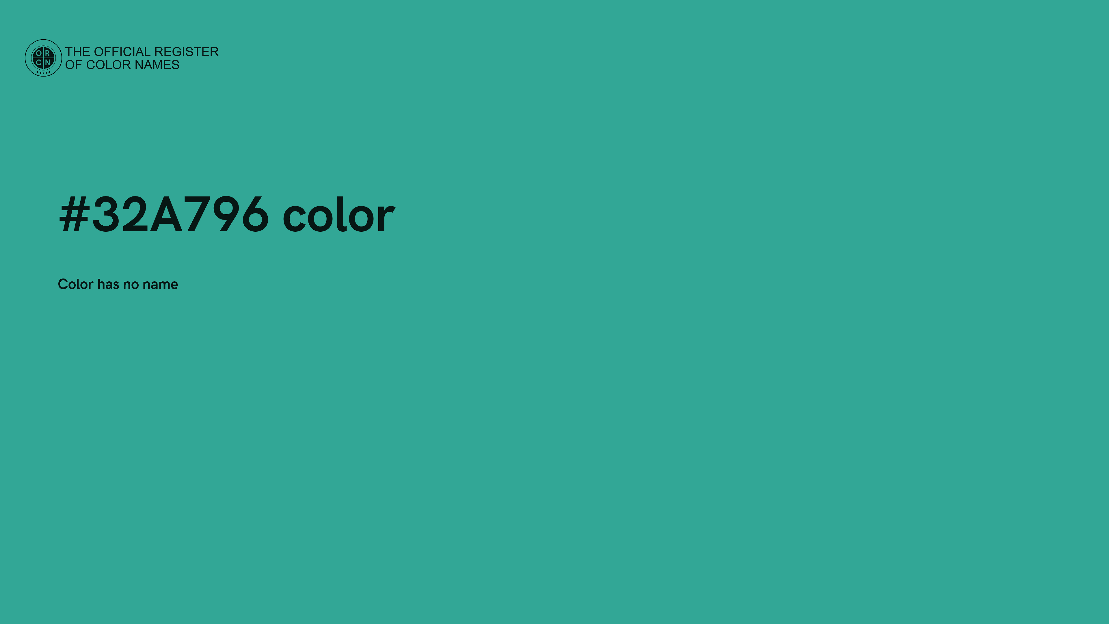 The digital color HEX #32A796 belongs to the Cyan Color Family featuring Moderate Saturation (Saturation Family) and Light (Brightness Family).