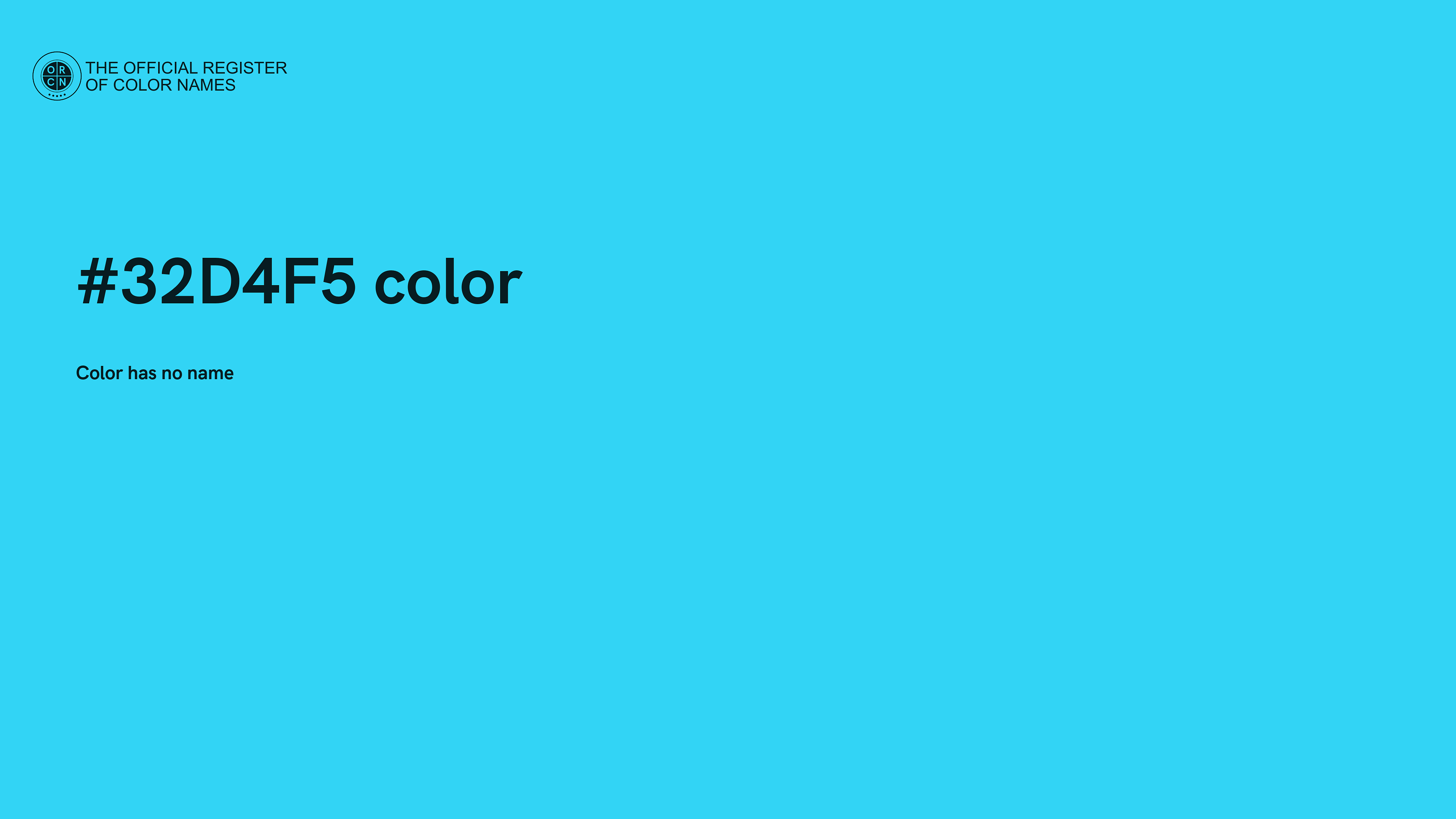 The digital color HEX #32D4F5 belongs to the Cyan Color Family featuring Full Saturation (Saturation Family) and Light (Brightness Family).