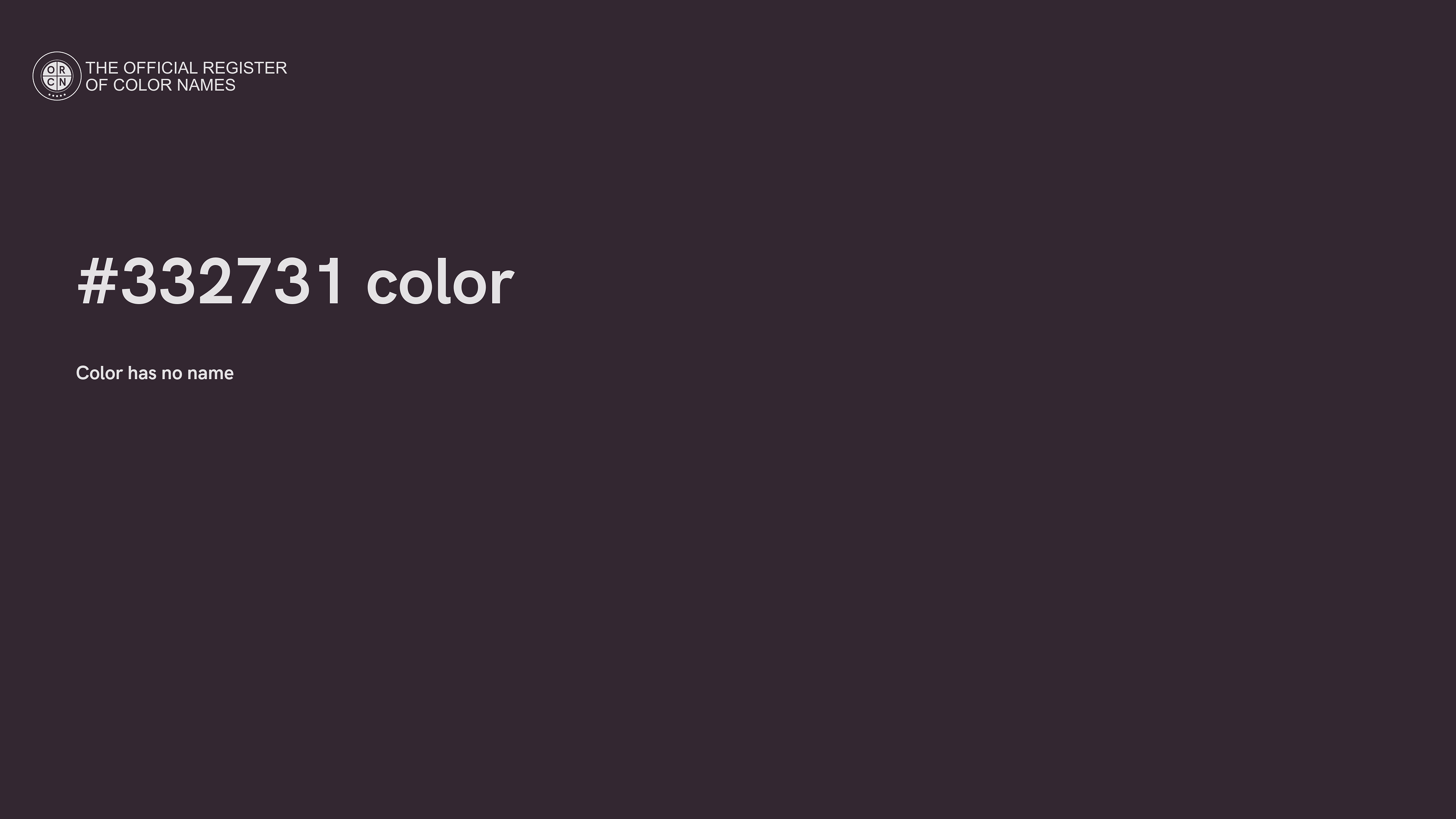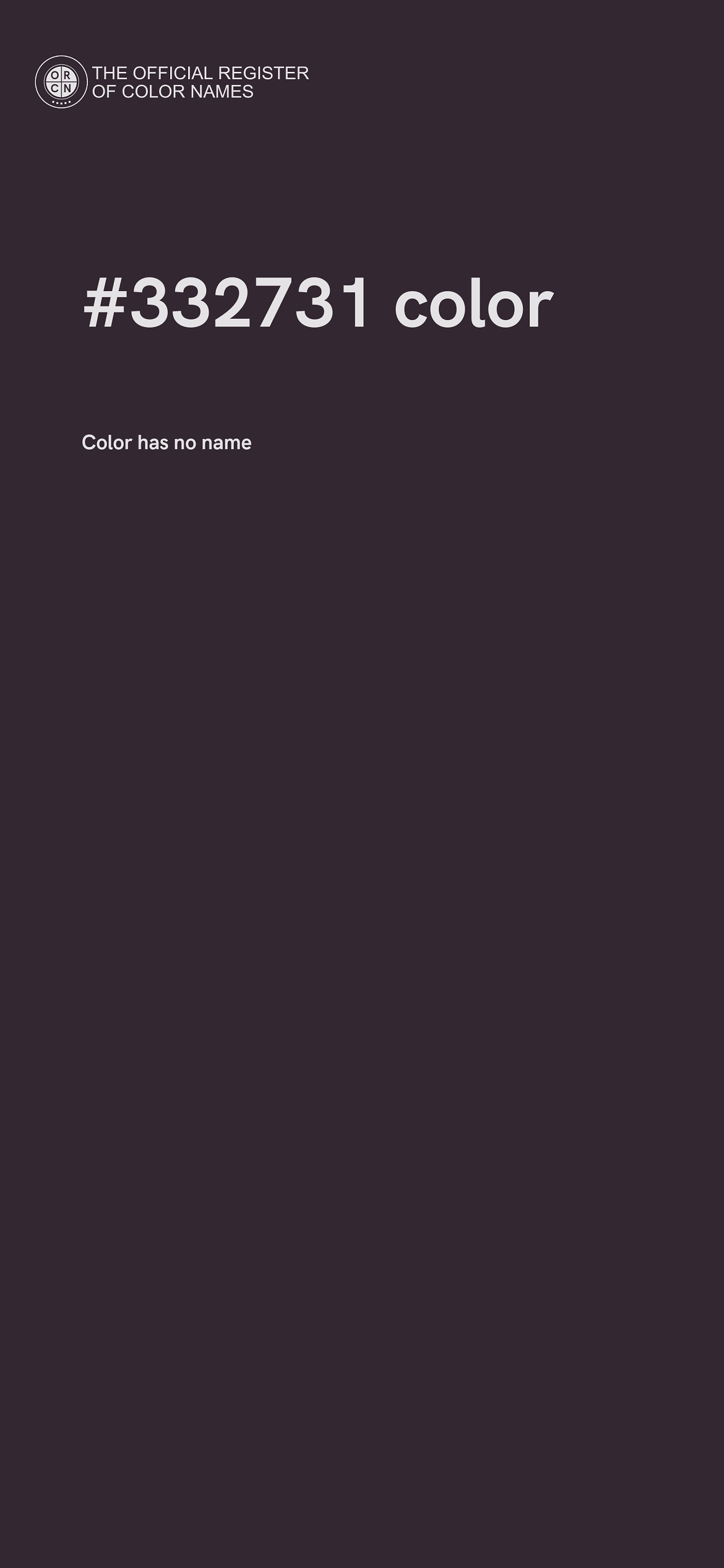 The digital color HEX #332731 belongs to the Magenta Color Family featuring Low Saturation (Saturation Family) and Dark (Brightness Family).
