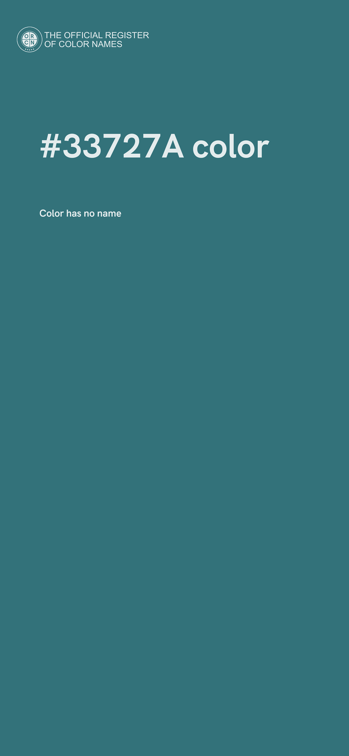 The digital color HEX #33727A belongs to the Cyan Color Family featuring Moderate Saturation (Saturation Family) and Neutral (Brightness Family).