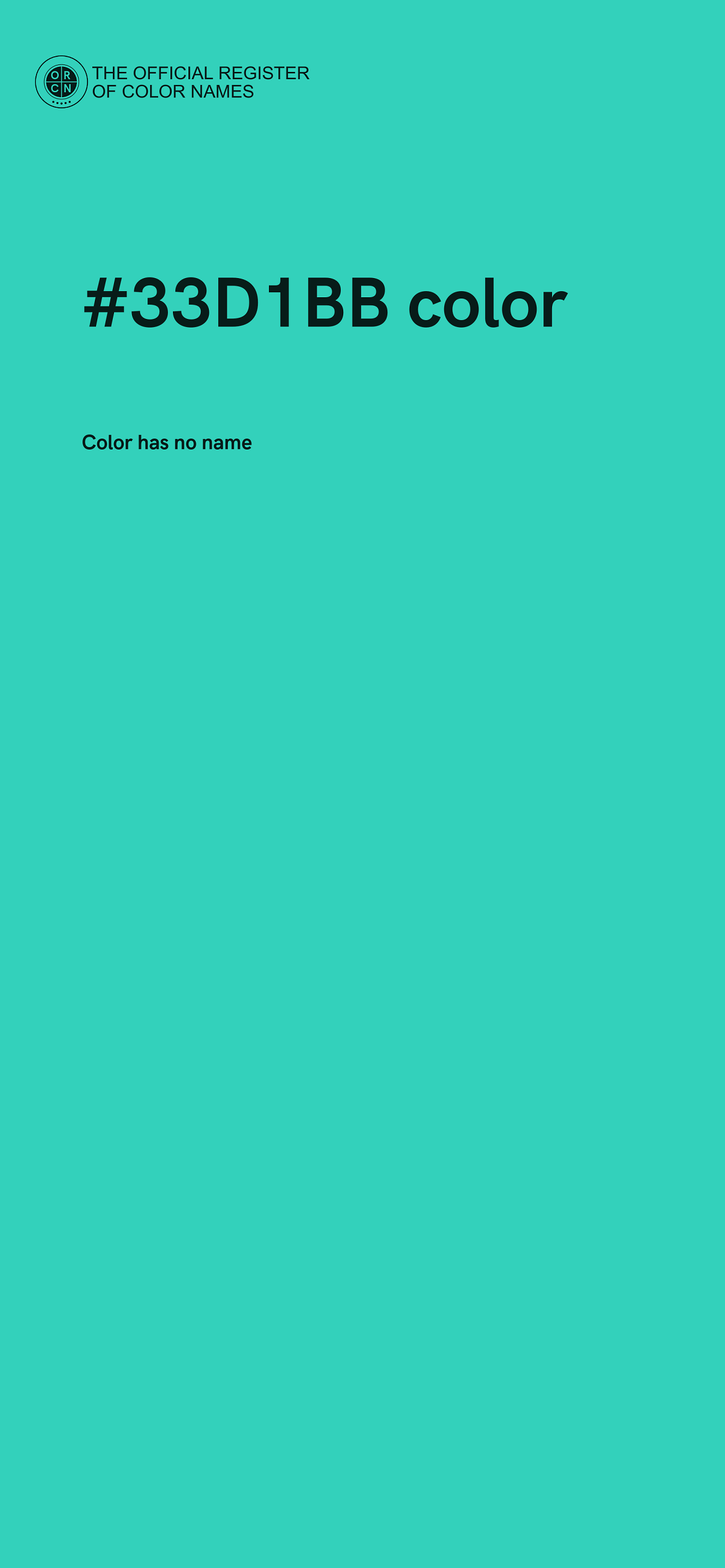 The digital color HEX #33D1BB belongs to the Cyan Color Family featuring High Saturation (Saturation Family) and Light (Brightness Family).