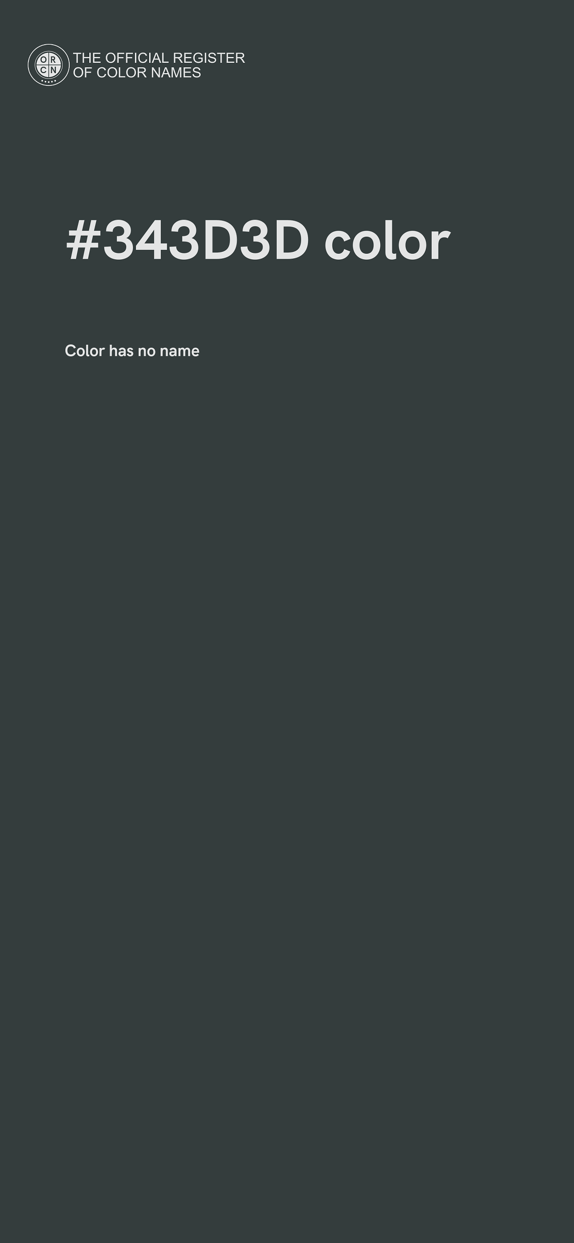 The digital color HEX #343D3D belongs to the Cyan Color Family featuring Desaturated (Saturation Family) and Dark (Brightness Family).