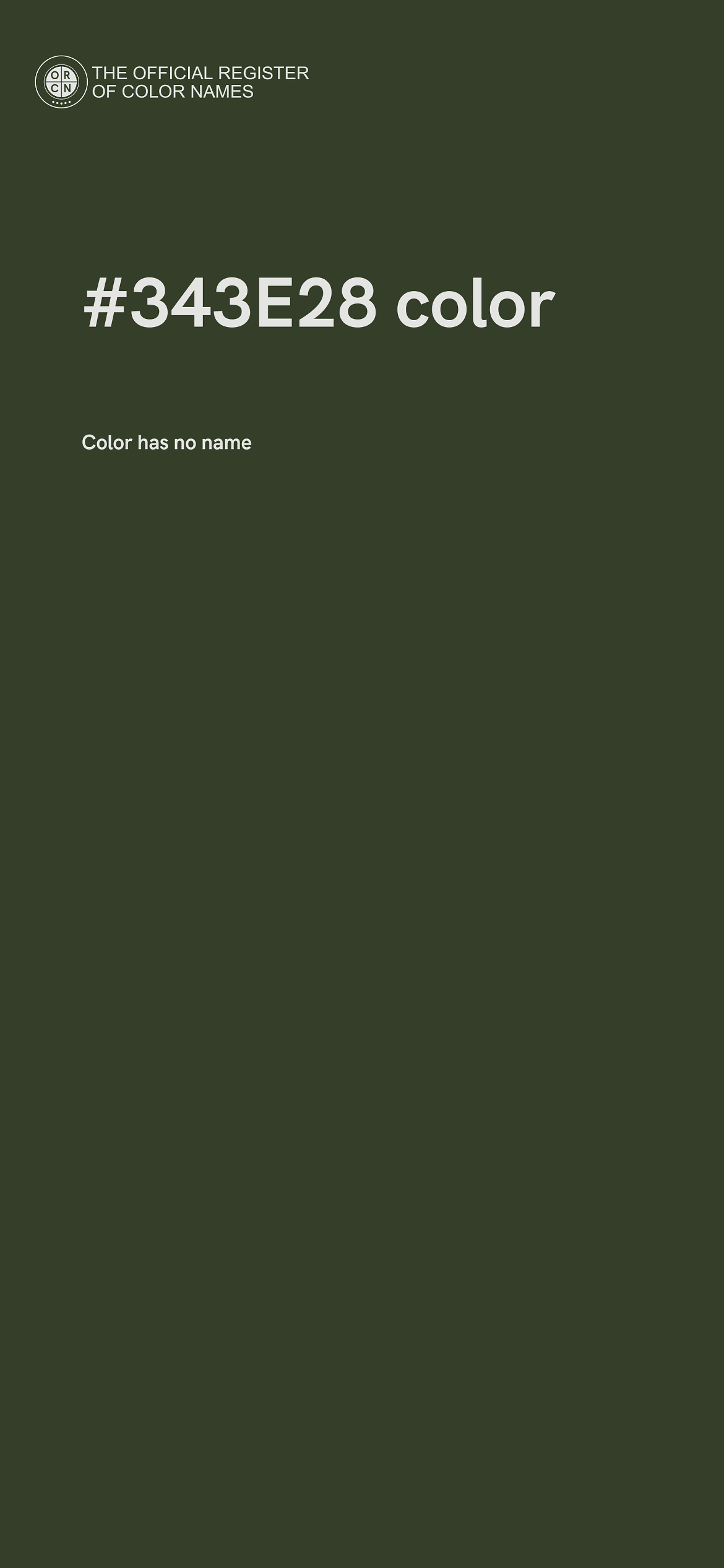The digital color HEX #343E28 belongs to the Chartreuse Color Family featuring Low Saturation (Saturation Family) and Dark (Brightness Family).