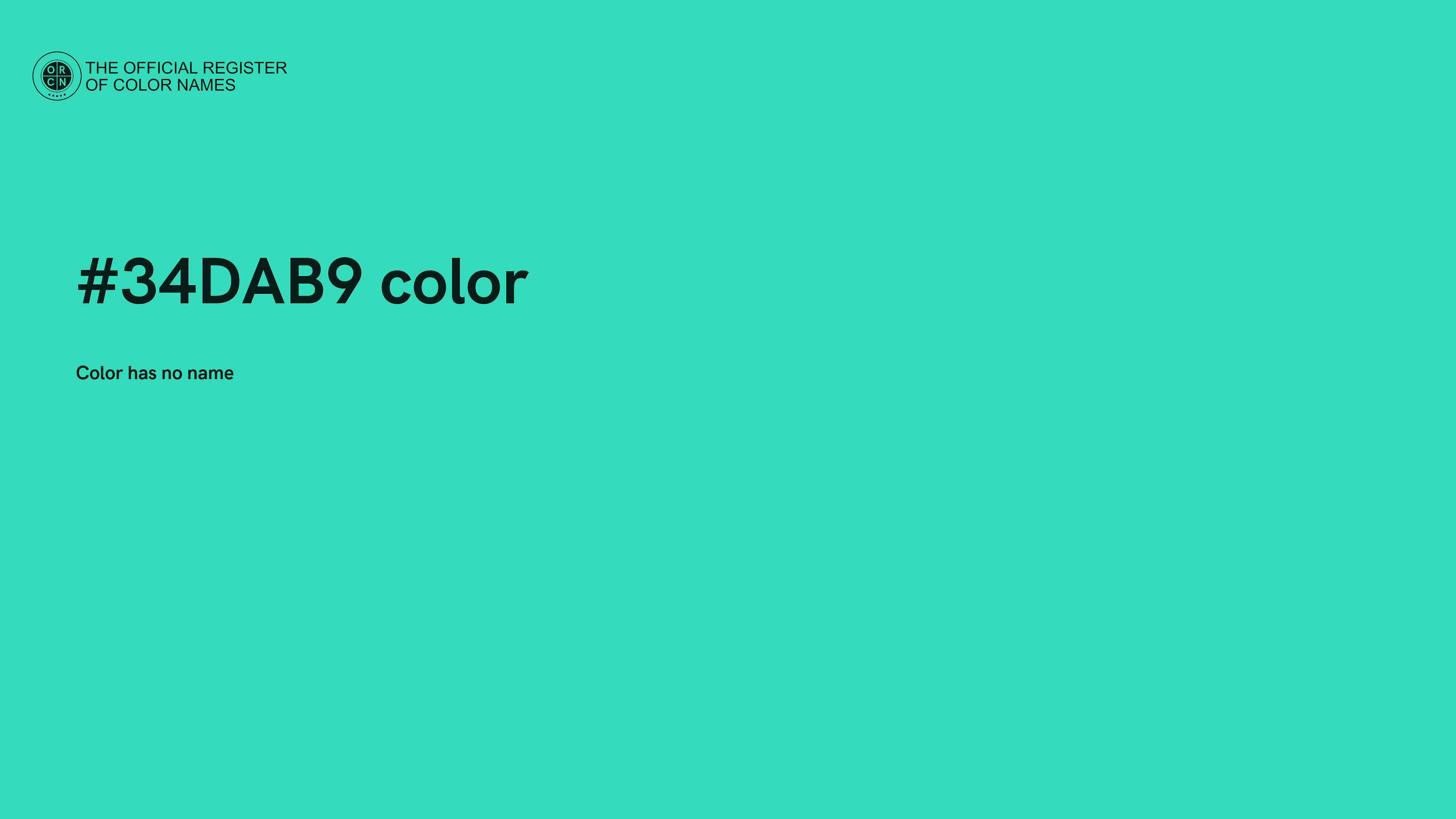 The digital color HEX #34DAB9 belongs to the Cyan Color Family featuring High Saturation (Saturation Family) and Light (Brightness Family).