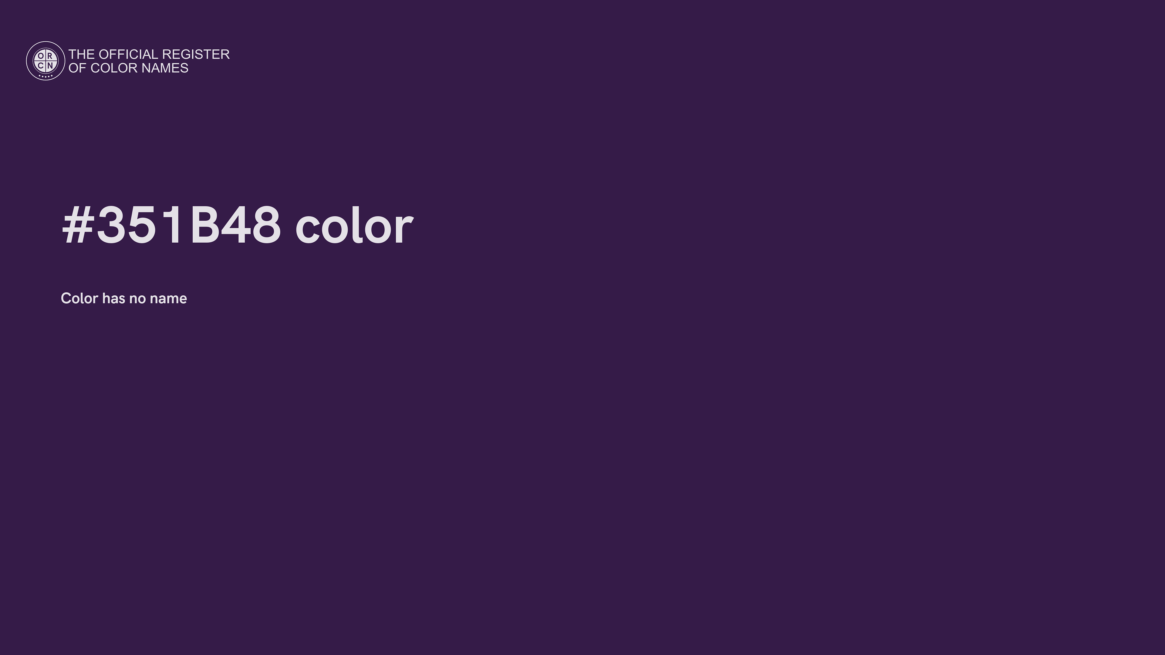 The digital color HEX #351B48 belongs to the Violet Color Family featuring Moderate Saturation (Saturation Family) and Dark (Brightness Family).