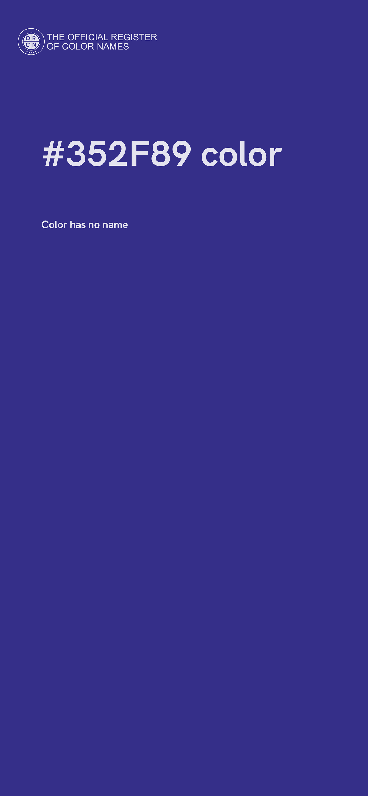 For printing in non digital world, #352F89 is represented in CMYK as 33 Cyan, 35 Magenta, 0 Yellow, and 46 Black (Key) (C:33 M:35 Y:0 K:46).