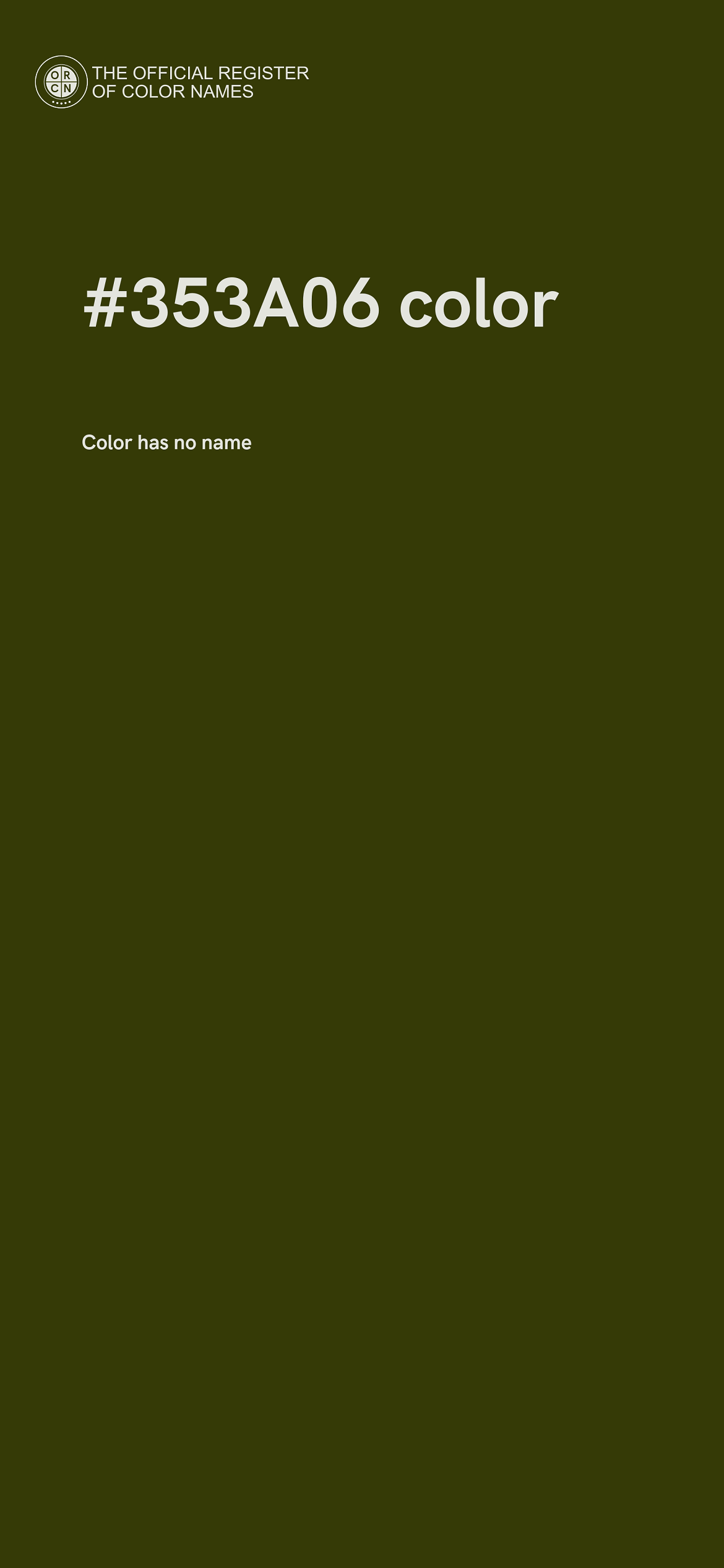 The digital color HEX #353A06 belongs to the Yellow Color Family featuring High Saturation (Saturation Family) and Dark (Brightness Family).
