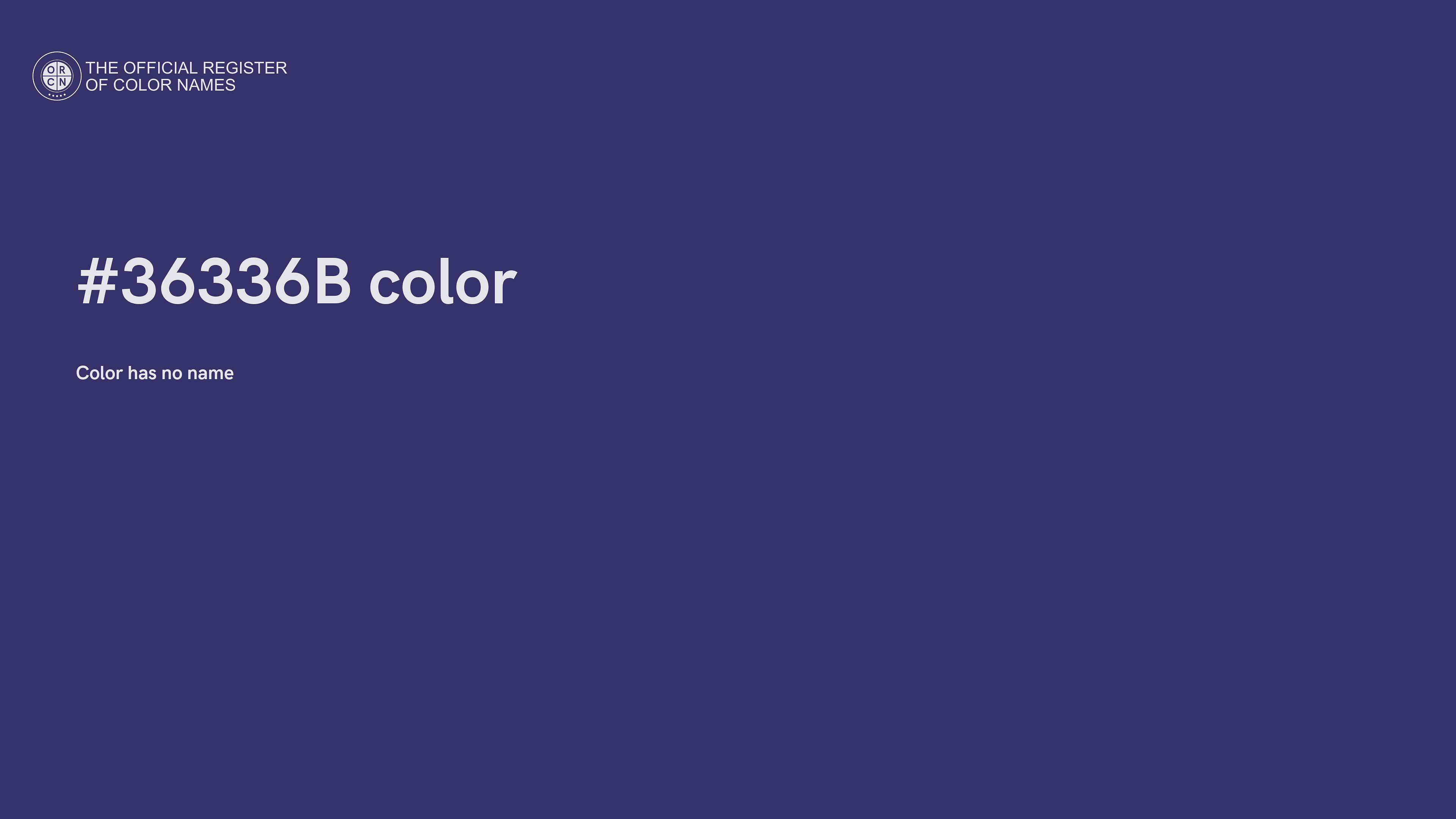 The digital color HEX #36336B belongs to the Blue Color Family featuring Mild Saturation (Saturation Family) and Neutral (Brightness Family).