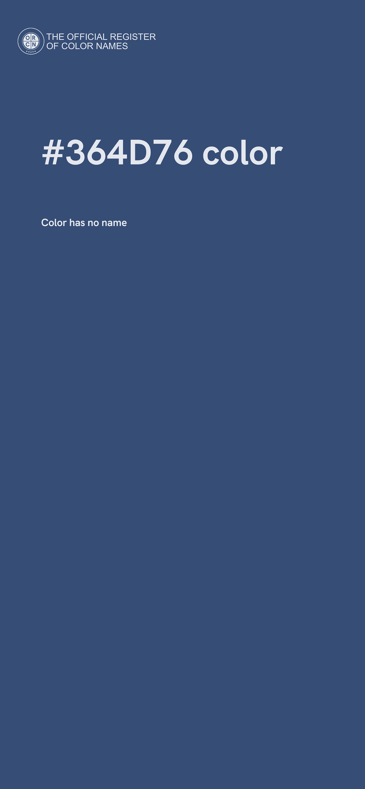 The digital color HEX #364D76 belongs to the Azure Color Family featuring Mild Saturation (Saturation Family) and Neutral (Brightness Family).