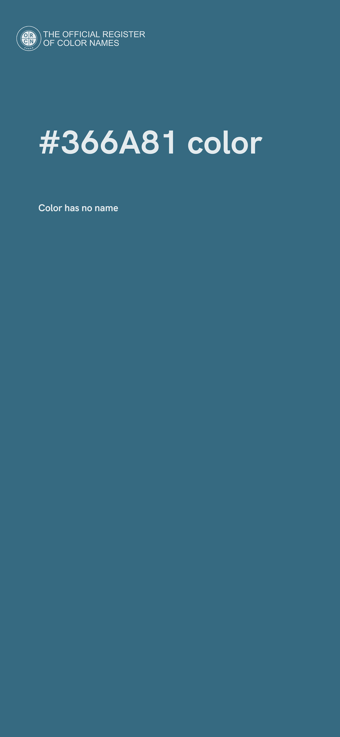 The digital color HEX #366A81 belongs to the Azure Color Family featuring Moderate Saturation (Saturation Family) and Neutral (Brightness Family).