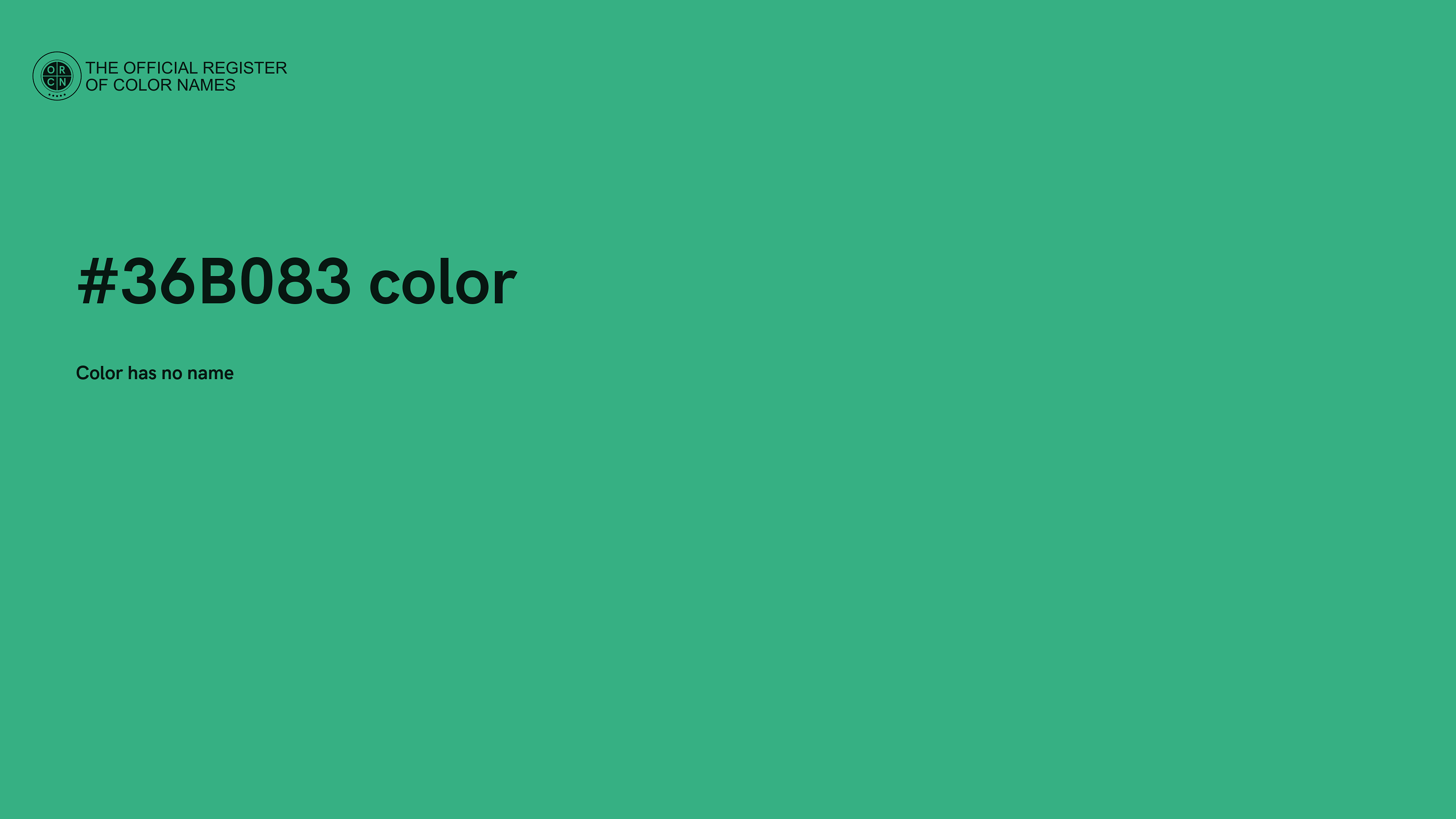The digital color HEX #36B083 belongs to the Spring Green Color Family featuring Moderate Saturation (Saturation Family) and Light (Brightness Family).