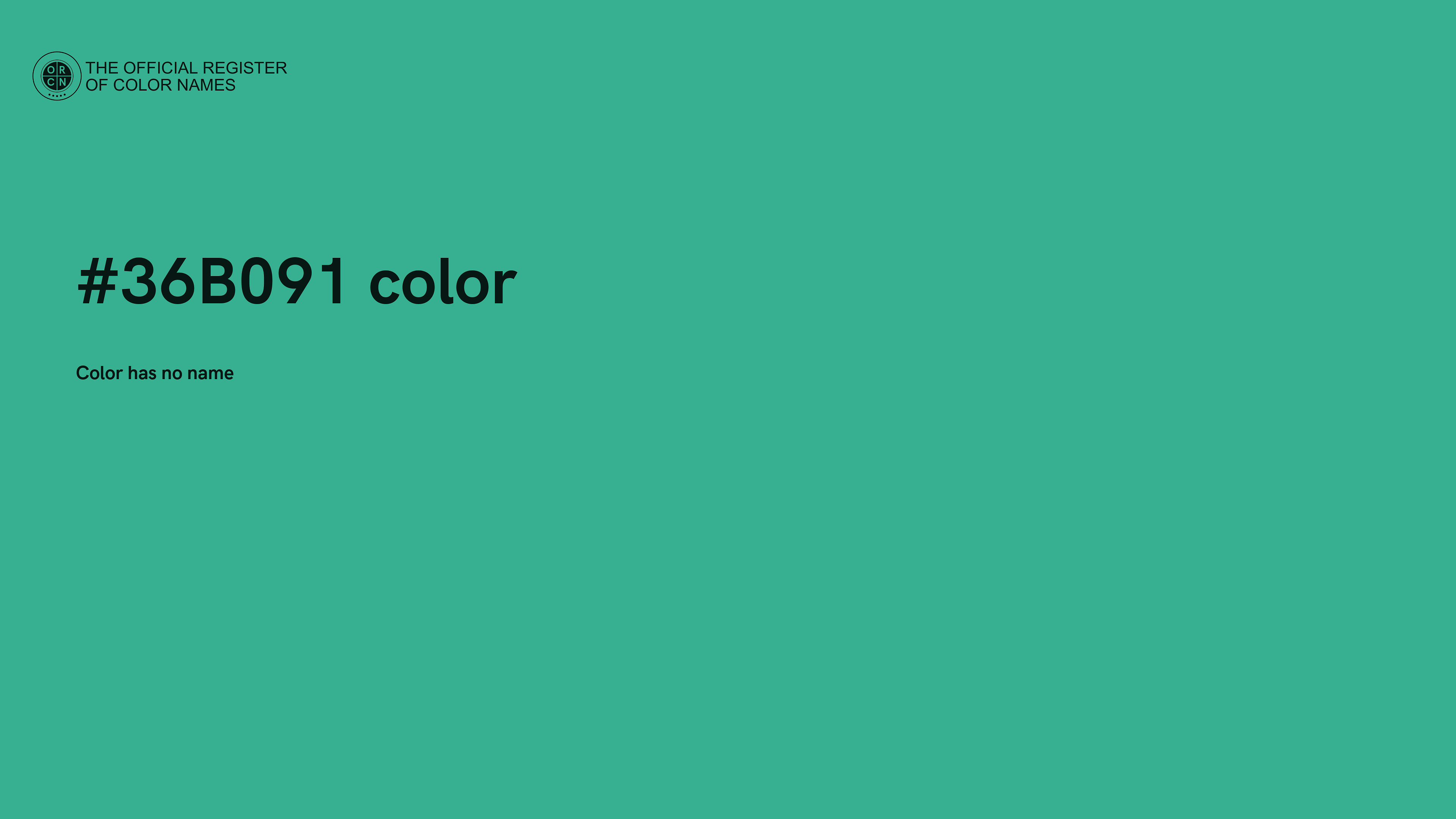 The digital color HEX #36B091 belongs to the Cyan Color Family featuring Moderate Saturation (Saturation Family) and Light (Brightness Family).