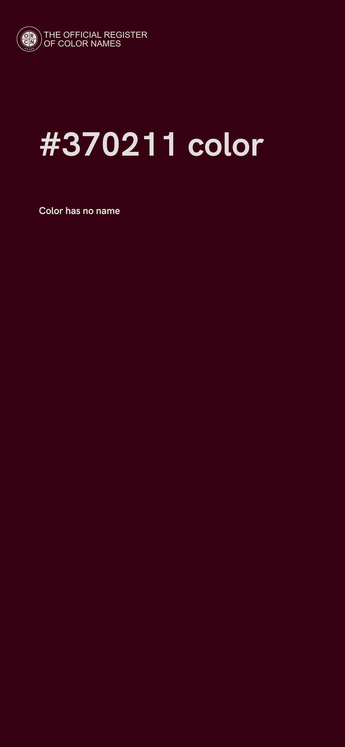 For printing in non digital world, #370211 is represented in CMYK as 0 Cyan, 21 Magenta, 15 Yellow, and 78 Black (Key) (C:0 M:21 Y:15 K:78).