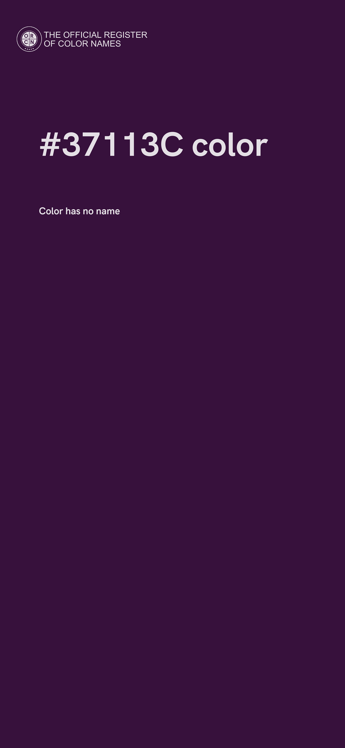 The digital color HEX #37113C belongs to the Magenta Color Family featuring Moderate Saturation (Saturation Family) and Dark (Brightness Family).