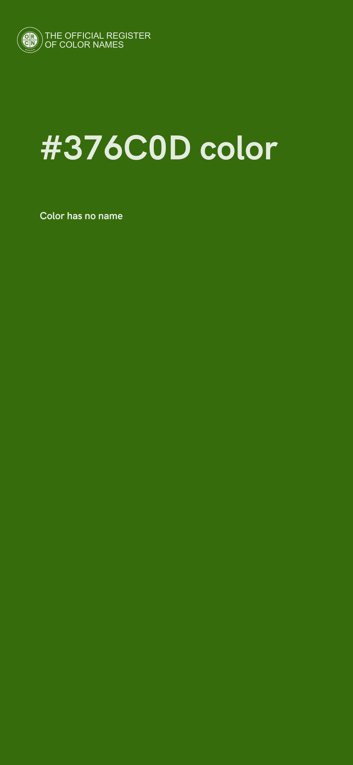 The digital color HEX #376C0D belongs to the Chartreuse Color Family featuring High Saturation (Saturation Family) and Dark (Brightness Family).