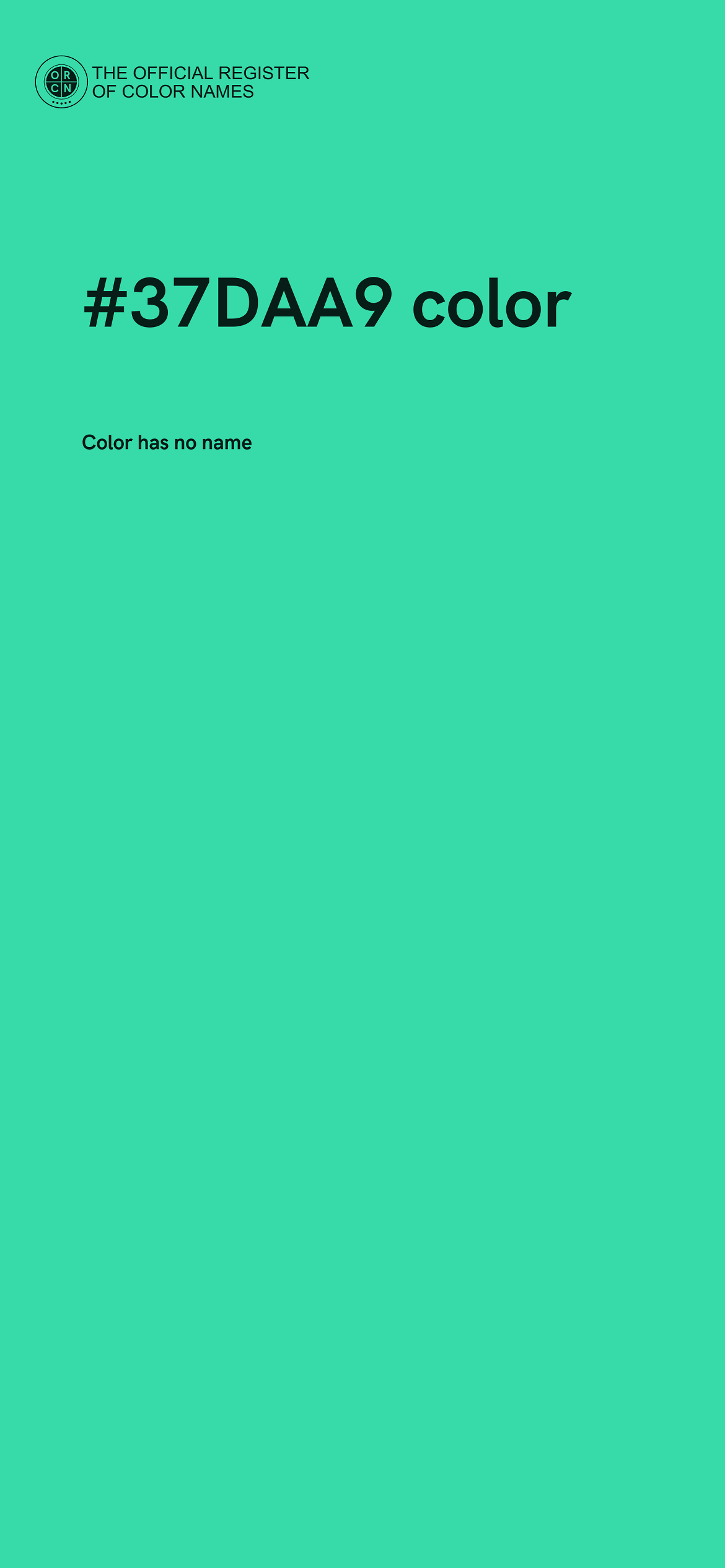 The digital color HEX #37DAA9 belongs to the Spring Green Color Family featuring High Saturation (Saturation Family) and Light (Brightness Family).