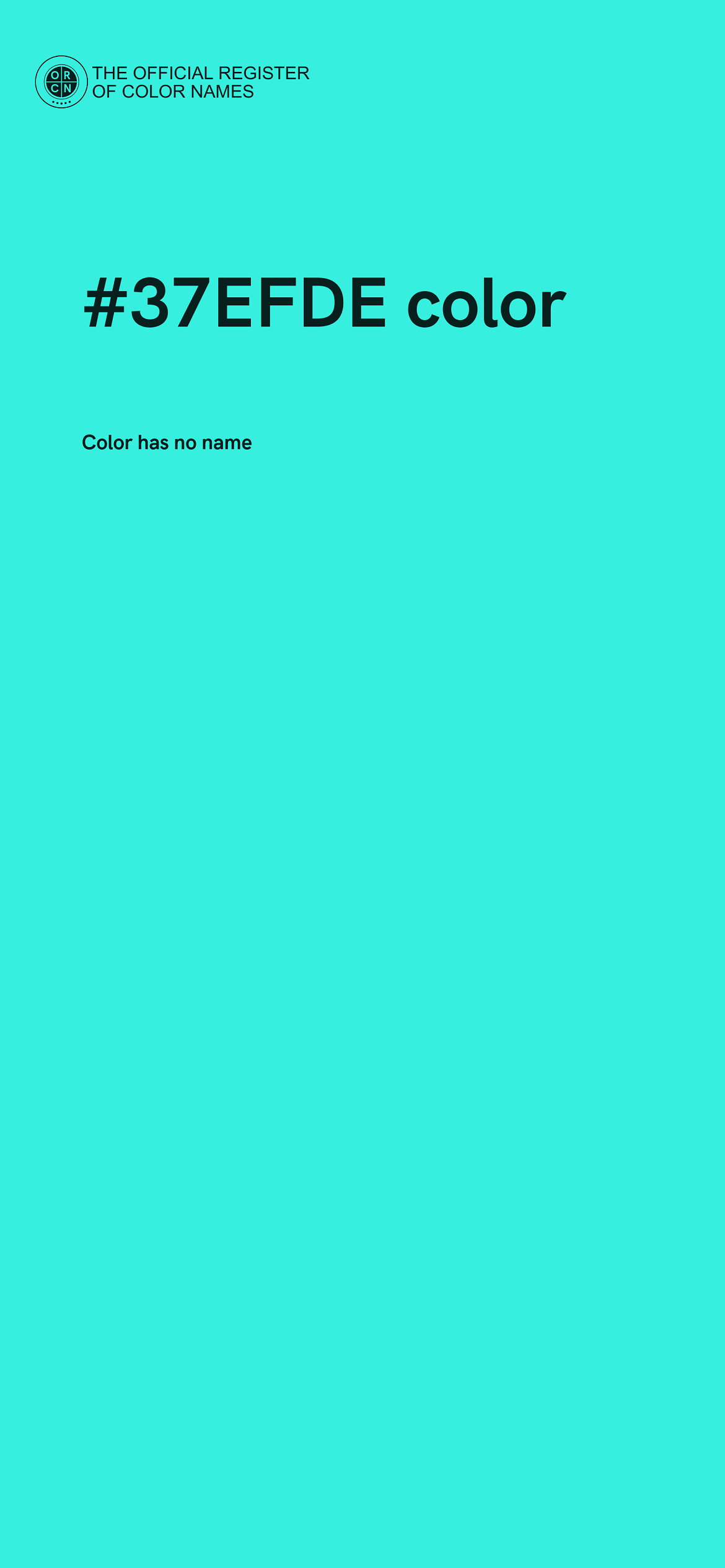 The digital color HEX #37EFDE belongs to the Cyan Color Family featuring Full Saturation (Saturation Family) and Light (Brightness Family).