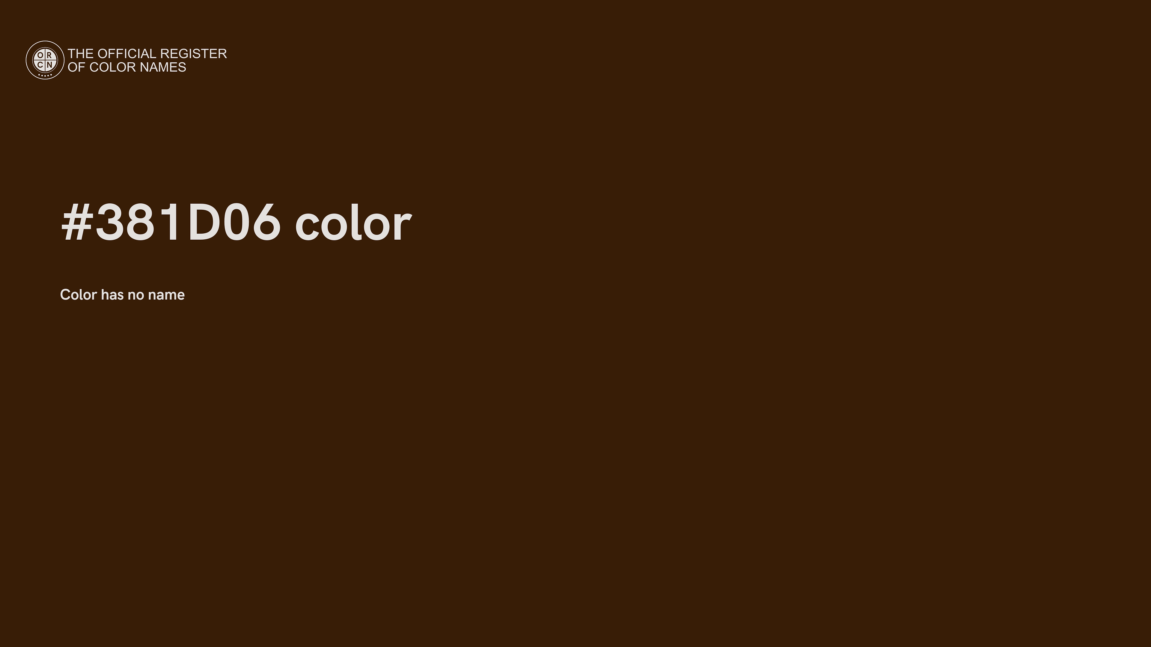 The digital color HEX #381D06 belongs to the Orange Color Family featuring High Saturation (Saturation Family) and Dark (Brightness Family).